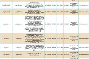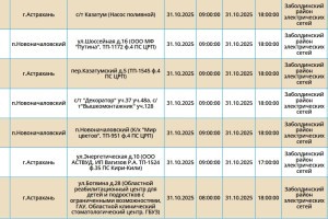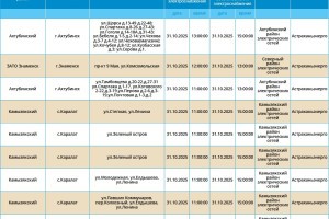 Завтра, 31 октября, в Астраханской области снова отключат электроэнергию. Отключения запланированные и проводятся для ремонтных работ на электросетях, сообщают в пресс-службе ПАО «Россети Юг». Так, без электричества останутся жители города Астрахань, а также Приволжского, Камызякского, Ахтубинского районов и ЗАТО Знаменск. Подробнее с адресами, по которым пройдут отключения, можно ознакомиться в галерее ниже: А информацию обо всех коммунальных проблемах нашего города вы можете найти на этой карте. Здесь, в режиме реального времени, вы можете наблюдать за отключениями света, воды и т.д. Если возникли незапланированные отключения, можно обращаться по указанным контактным телефонам: