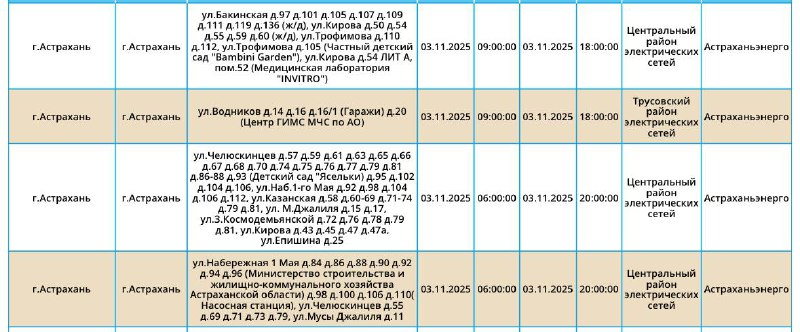 3 ноября некоторые астраханцы останутся без электричества02 ноября 2025 года, 18:30