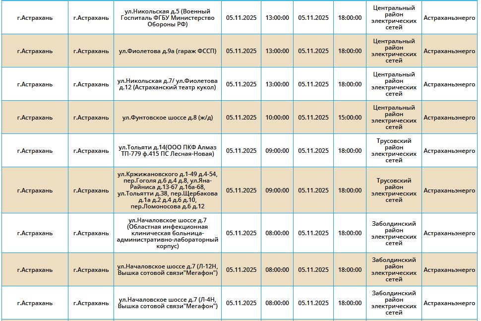 5 ноября в Астрахани без света останутся военный госпиталь, кафе и жилые дома04 ноября 2025 года, 18:40