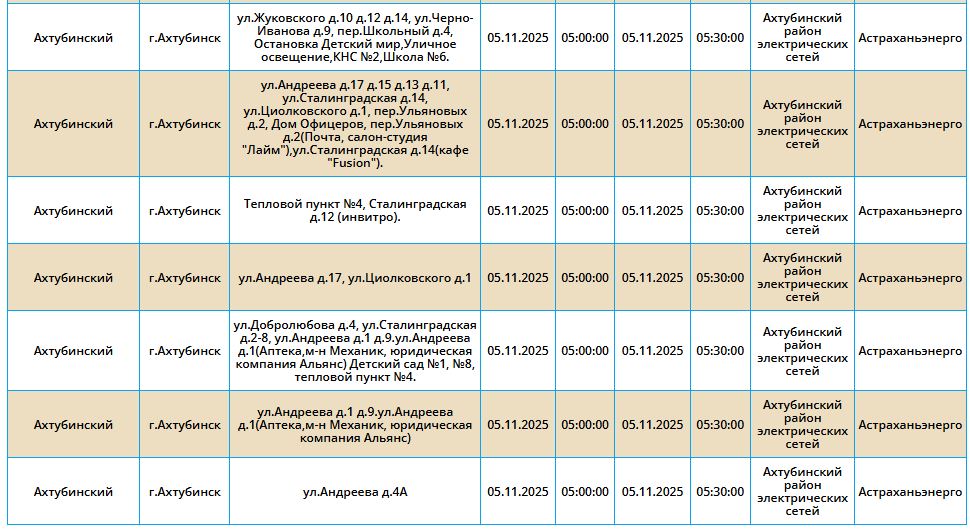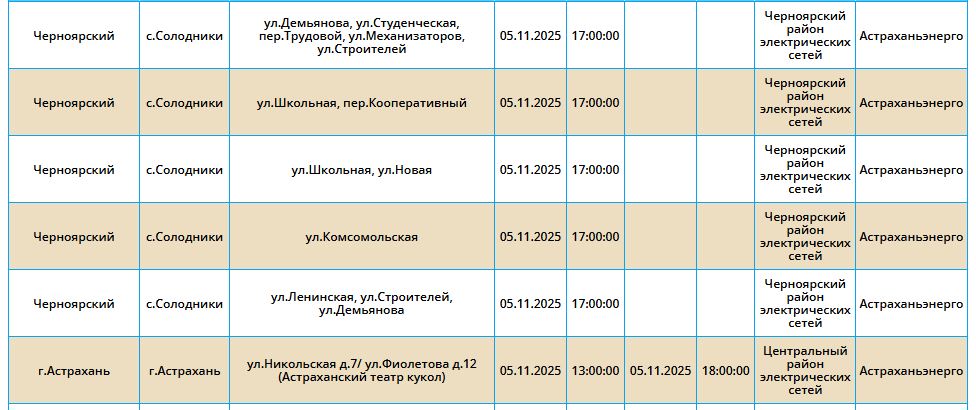 Праздничные выходные закончились, а значит астраханцы снова столкнутся с плановыми отключениями электроэнергии. На этот раз для выполнения профилактических работ свет отключат в Черноярском, Ахтубинском районах, но больше всего они затронут областной центр. Подробности в галерее: Все коммунальные проблемы нашего города можно отслеживать с помощью этой карты. В режиме реального времени вы можете увидеть информацию об отключениях электроэнергии, водоснабжения и других коммунальных услуг.