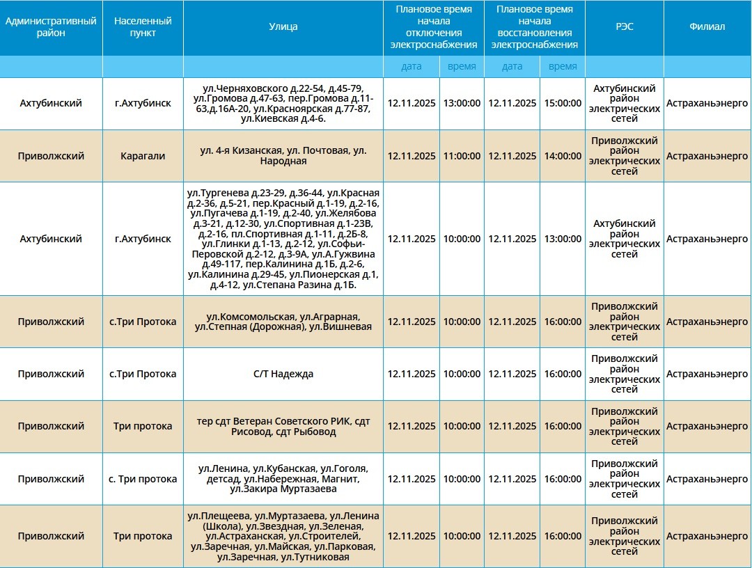 12 ноября тысячам астраханцев отключат электроэнергию11 ноября 2025 года, 20:41