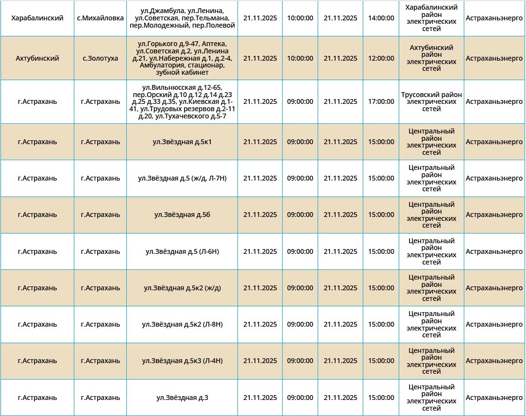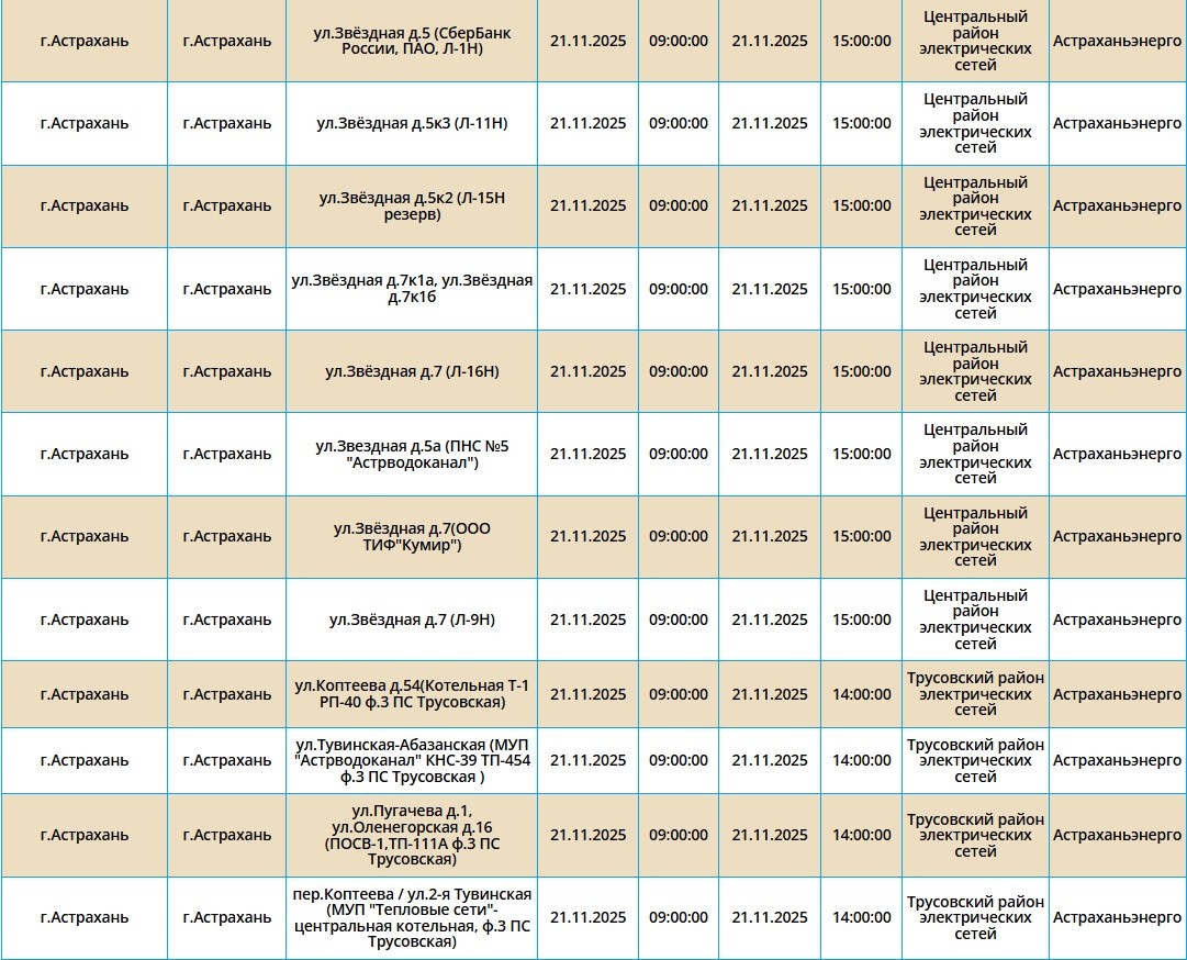 21 ноября света не будет в Астрахани и пяти селах20 ноября 2025 года, 20:31