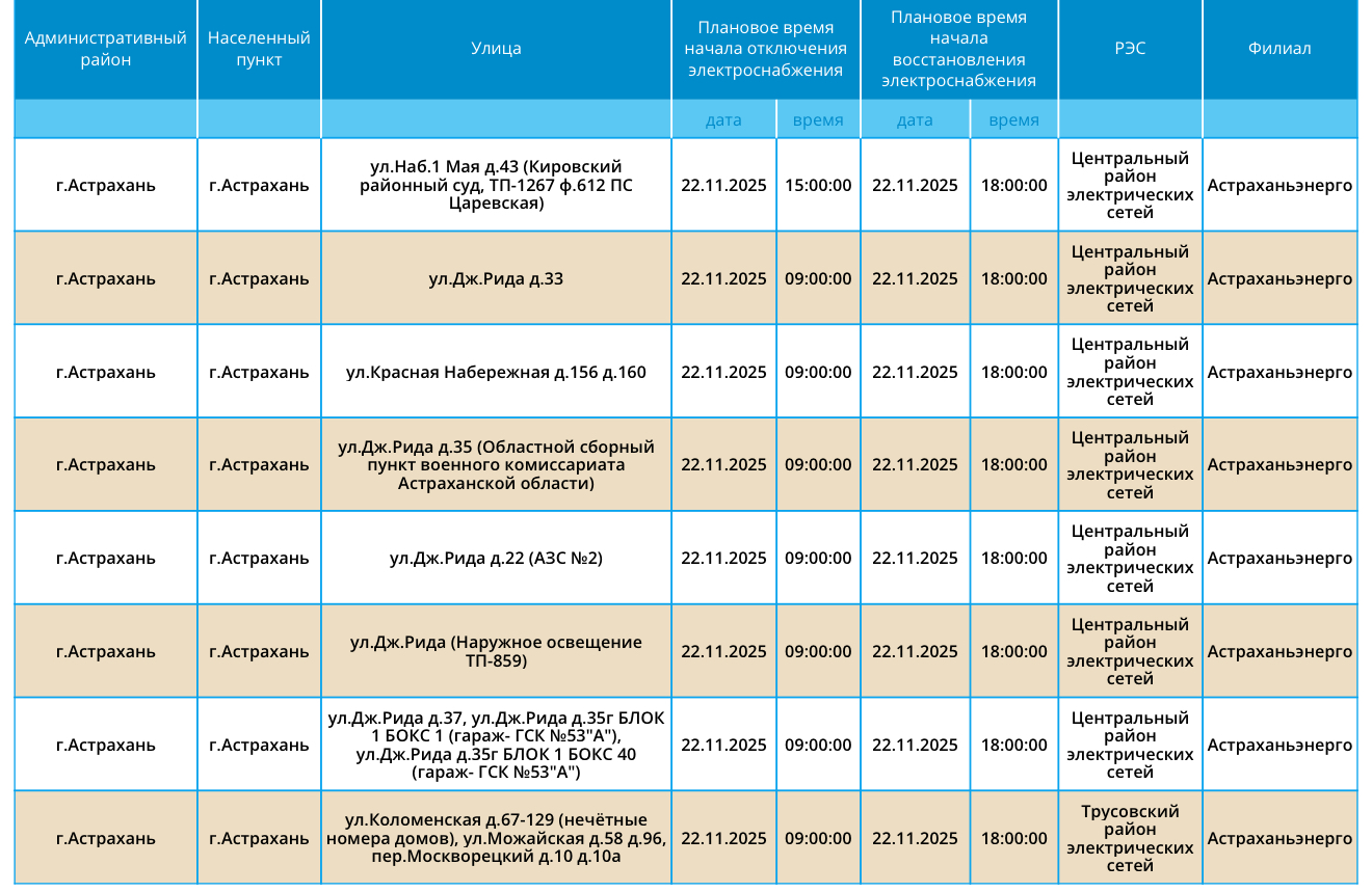 22 ноября некоторым астраханцам отключат свет21 ноября 2025 года, 20:30