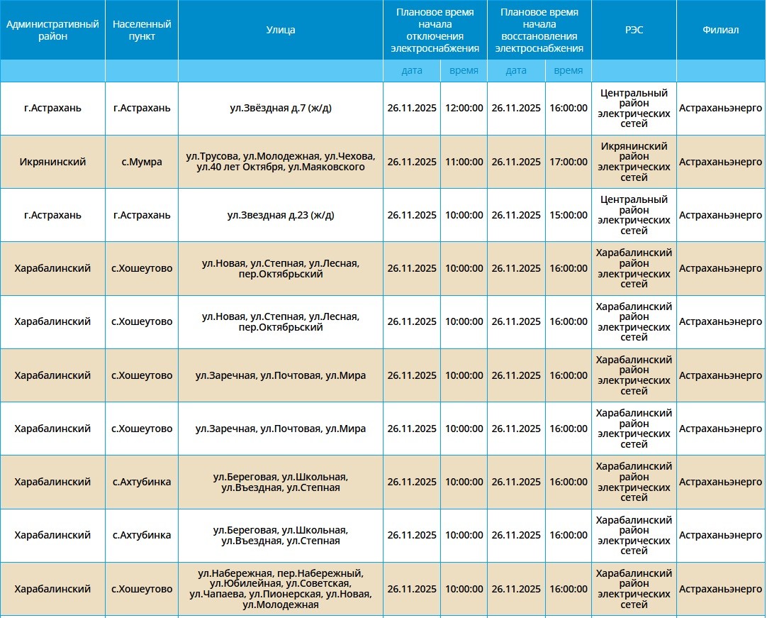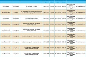Завтра сотни астраханцев останутся без электроэнергии25 ноября 2025 года, 20:31