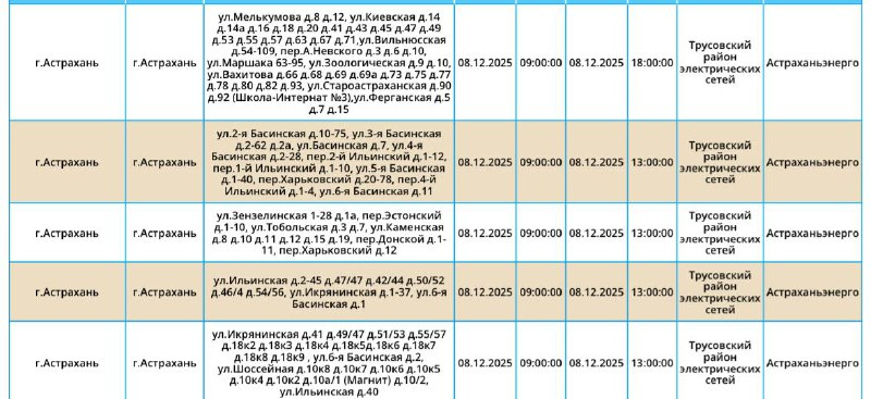 Какие объекты недвижимости попадут под плановые отключения энергетиков в первый день недели, смотрите в нашем материале. Завтра в Астрахани пройдут отключения электроэнергии. Кроме областного центра и Камызякского района, их больше нигде не предвидится - жители других муниципалитетов могут быть спокойны. А список адресов, попавших под отключение, мы публикуем ниже: А если отключения случились внепланово, звоните по телефонам, указанным ниже: