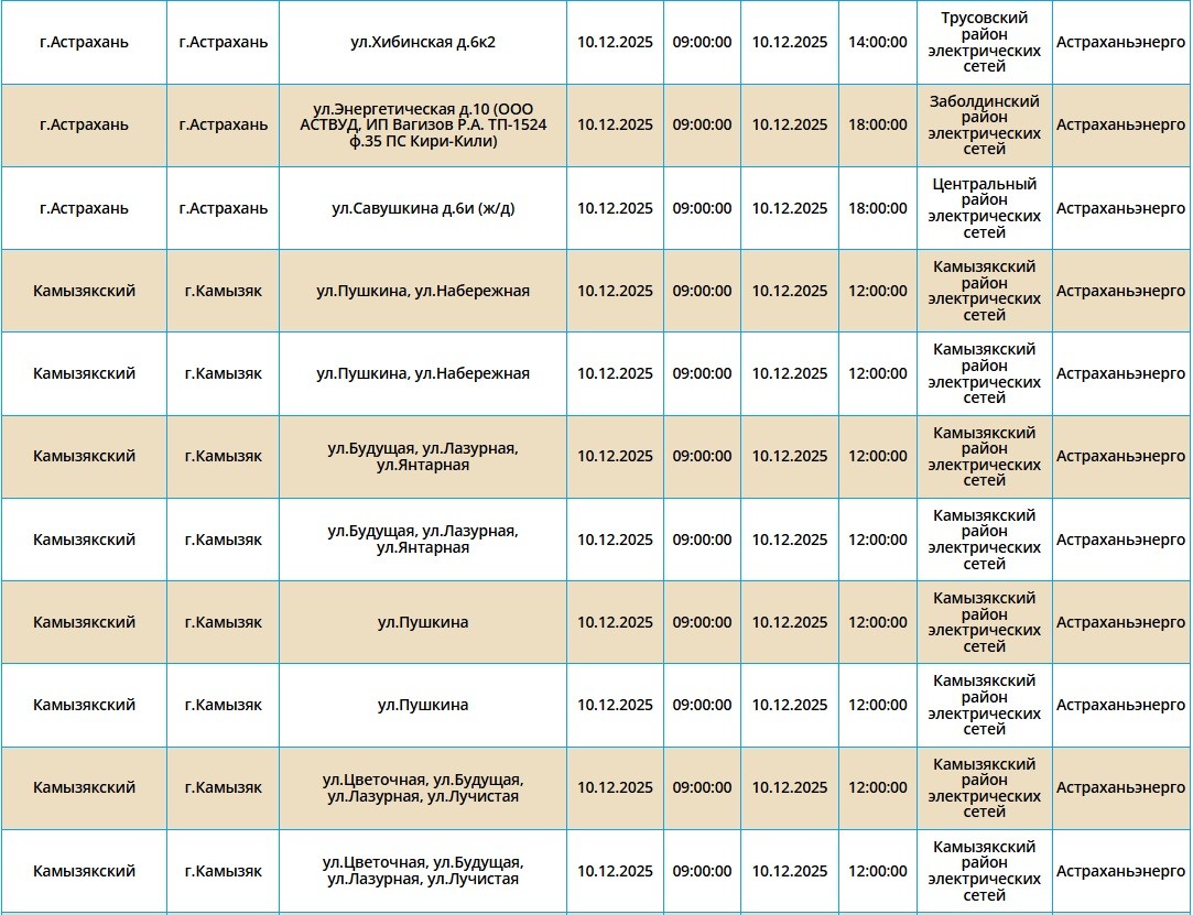 10 декабря некоторые астраханцы останутся без электроэнергии09 декабря 2025 года, 19:41