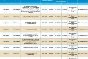 Завтра некоторым астраханцам отключат электроэнергию12 декабря 2025 года, 20:00