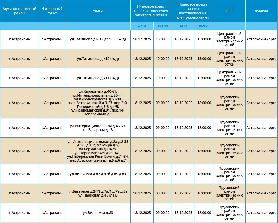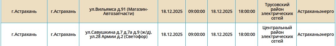 В Астрахани 18 декабря пройдут плановые отключения электроэнергии17 декабря 2025 года, 20:31