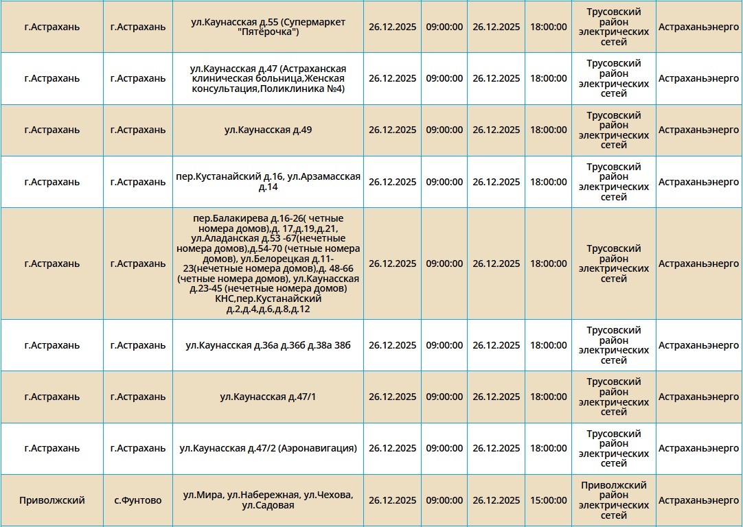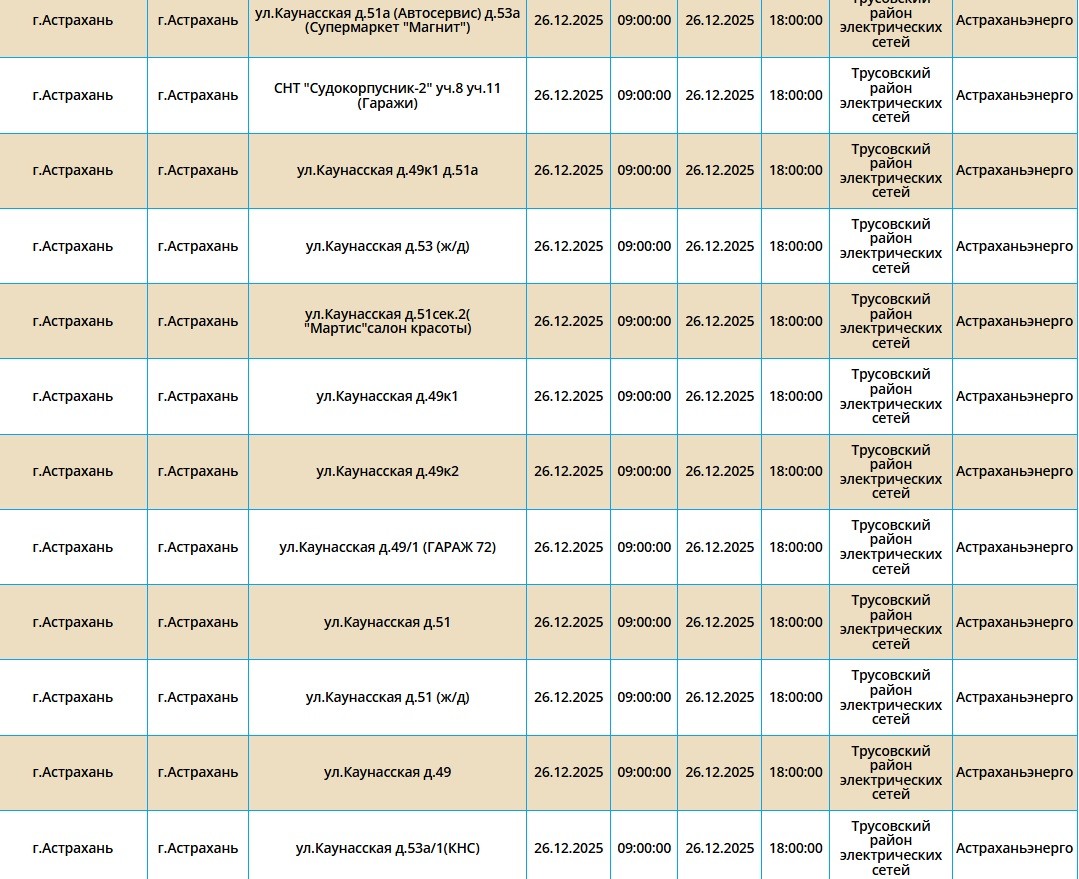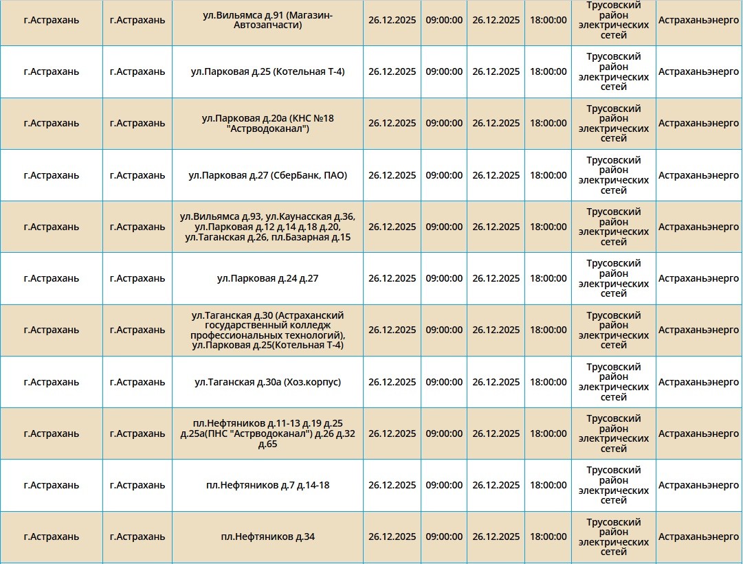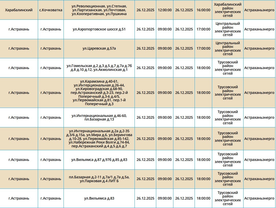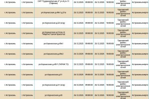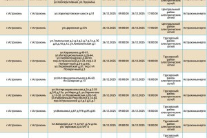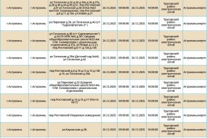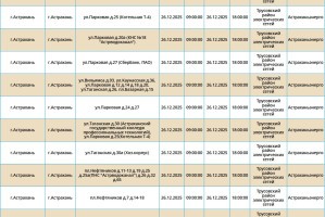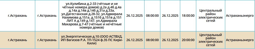 26 декабря в Астрахани и области пройдут массовые отключения света25 декабря 2025 года, 19:41