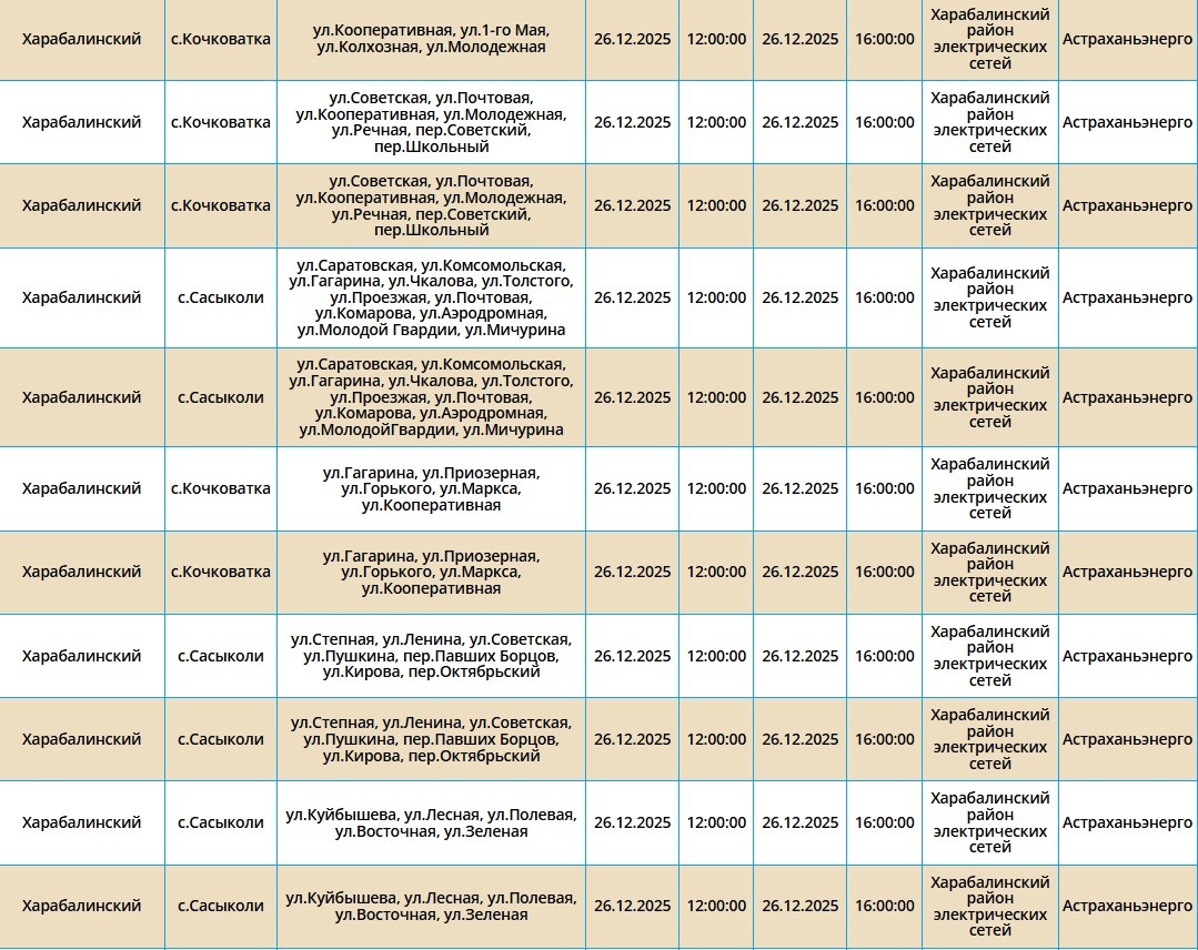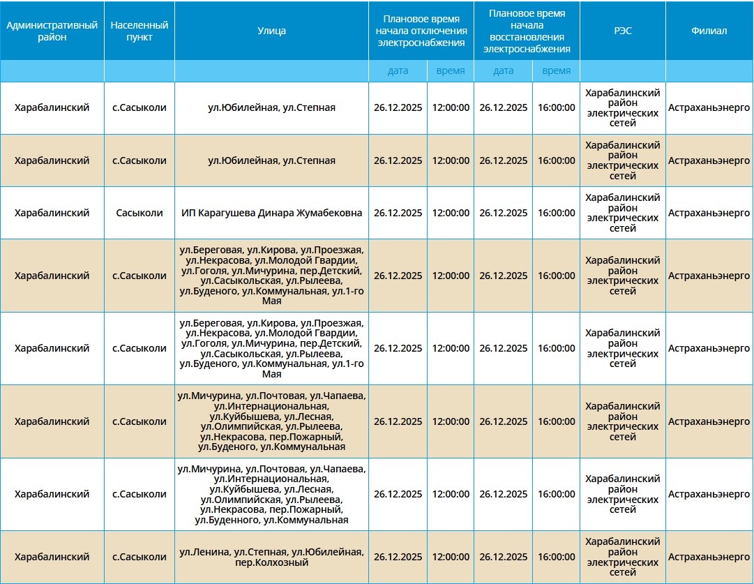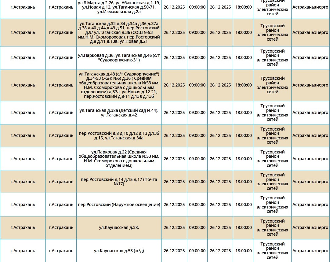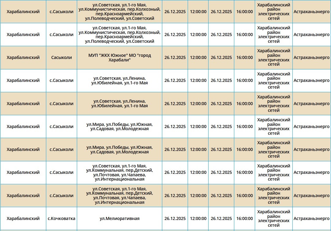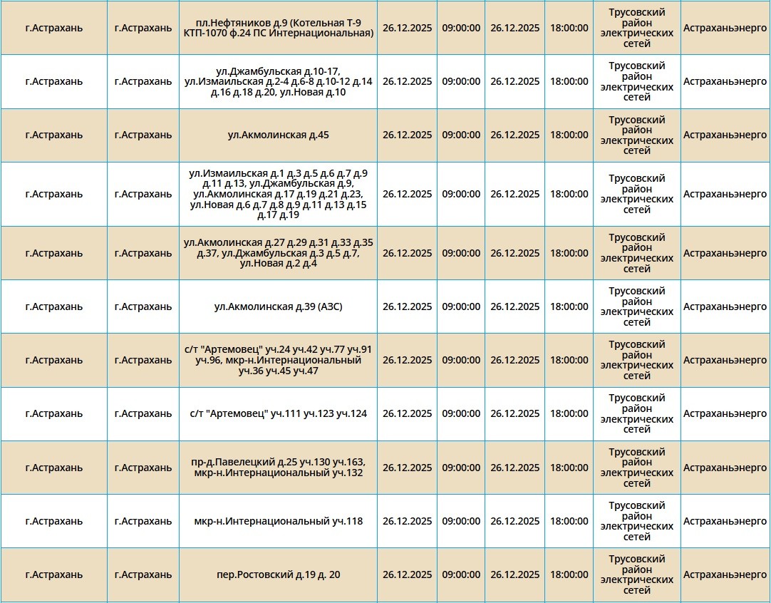 26 декабря в Астрахани и области пройдут массовые отключения света25 декабря 2025 года, 19:41