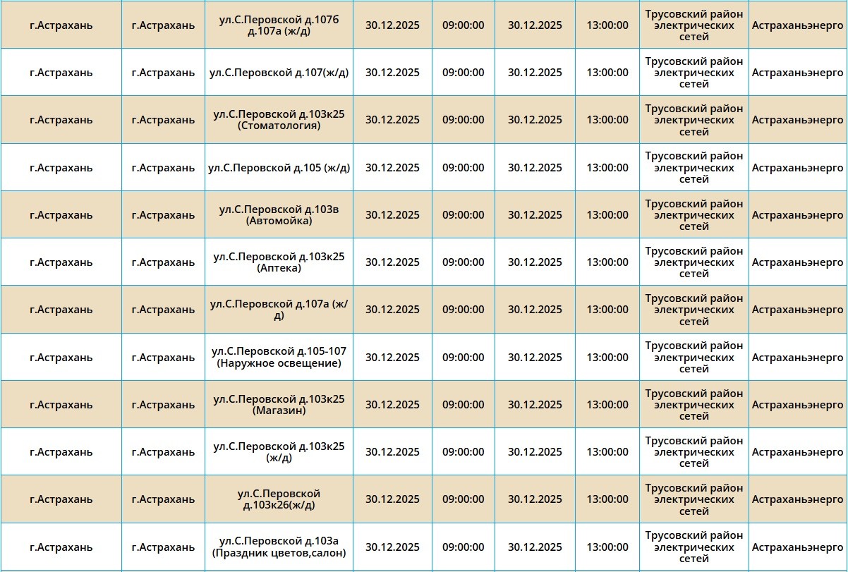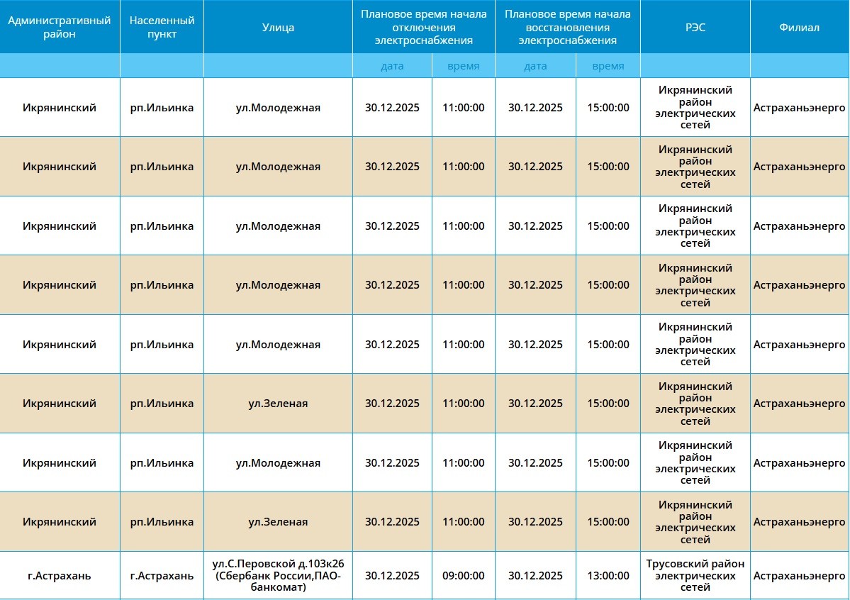 Завтра в Астраханской области продолжатся плановые отключения электроэнергии. Так, без бытового ресурса останутся жители города Астрахань и рабочего поселка Ильинка. Света не будет всего пол дня, но самые ранние отключения начнутся уже в 09:00. В это время сотрудники ПАО «Россети Юг» планируют проводить необходимые ремонтные работы на электросетях. Подробнее с адресами можно ознакомиться в галерее ниже: Напоминаем, что следить за актуальной информацией о проблемах коммунальной сферы в городе Астрахань можно на удобной интерактивной карте. Здесь вы всегда сможете узнать свежую информацию о текущих профилактических мероприятиях, таких как временное прекращение подачи электроэнергии, воды и прочих коммунальных услуг. Если же непредвиденное отключение произошло неожиданно, незамедлительно обращайтесь по указанным контактным номерам телефонов: