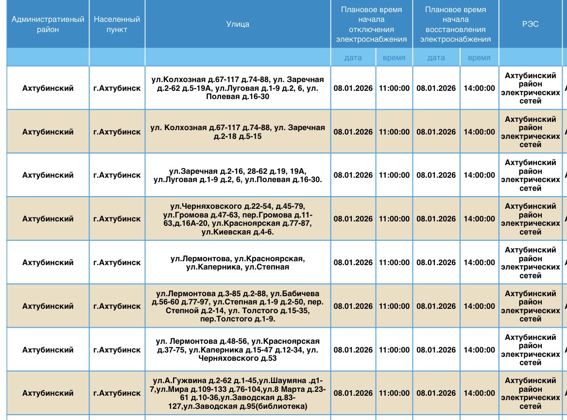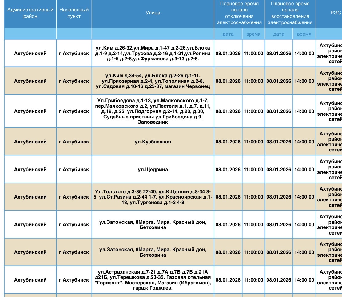 Завтра тысячи астраханцев останутся без света08 января 2026 года, 03:30