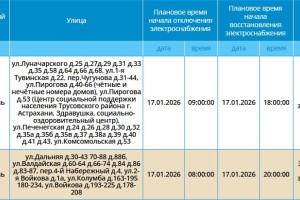 17 января некоторым астраханцам отключат электроэнергию16 января 2026 года, 20:30