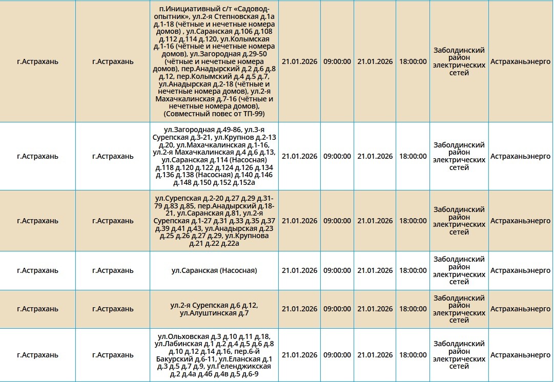 21 января сотни астраханцев снова останутся без света20 января 2026 года, 20:30