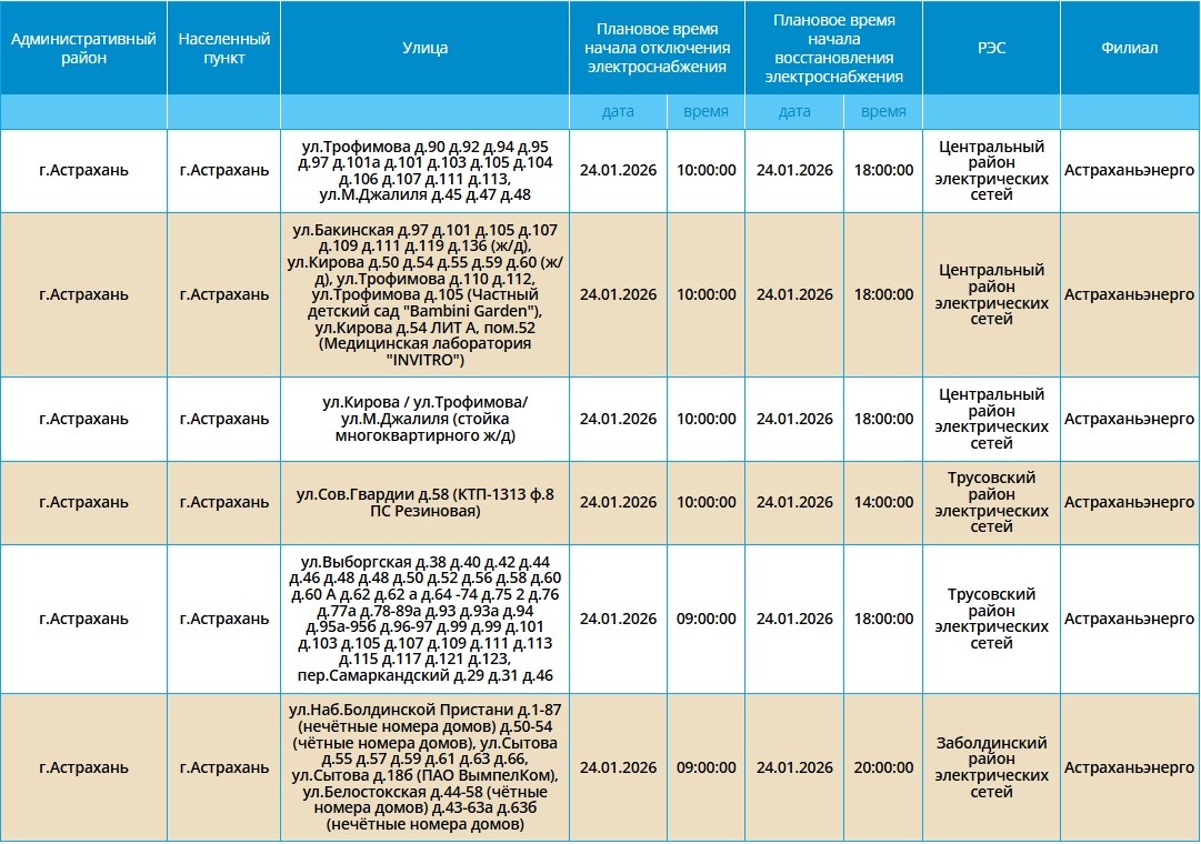 24 января сотни астраханцев проведут несколько часов без света23 января 2026 года, 20:30