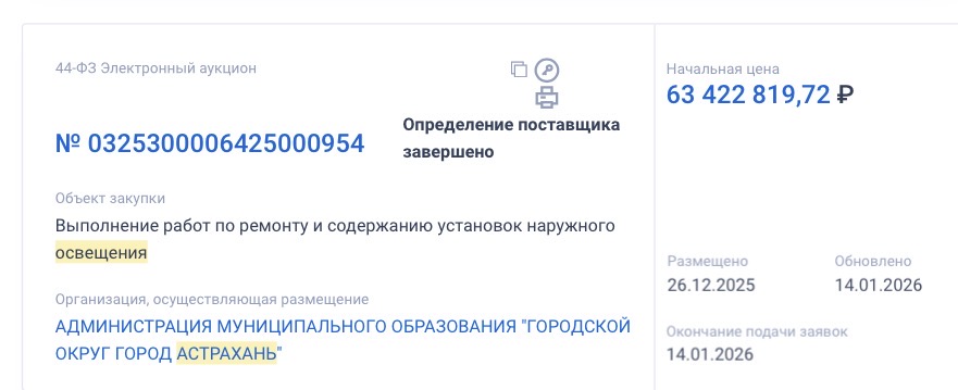 На сайте государственных закупок появился интересный тендер. Администрация Астрахани ищет подрядчиков на выполнение работ по ремонту и содержанию установок наружного освещения. Действовать контракт будет до конца года, а это значит, что у астраханцев появилась надежда на то, что в городе совсем скоро может стать светлее, а значит, безопаснее. Стоимость тендера - 63 миллиона рублей. Описанием объекта закупки предусмотрено выполнение работ по ремонту и содержанию установок наружного освещения города Астрахани с целью их бесперебойного функционирования. Работать фонари должны в соответствии с графиком включения и отключения наружного освещения. А это значит, больше никаких работающих опор днем. И в связи с метеорологическими условиями подрядчик должен будет корректировать график. Также в полномочия подрядчика включили оперативную ликвидацию аварийных ситуаций: Устранение обрывов проводов, оптоволоконных линий связи. Обнаружение и устранение в минимально сжатые сроки коротких замыканий в линии наружного освещения. Очистка линии наружного освещения от упавших веток и стволов деревьев. Демонтаж опор, пультов наружного освещения, сетей наружного освещения, поврежденных в результате столкновения с автомобильным транспортом. Устранение угрозы падения световых конструкций. Прочие действия, направленные на устранение аварийных ситуаций на сетях наружного освещения. Объем работ внушает, ничего не скажешь. Главное, чтобы трудились специалисты не только на бумагах, а соблюдали все условия и график. Гарантия на проводимые работы - 36 месяцев. К слову, аналогичные контракты были и раньше, но ярче не становилось. Где темно? В целом, ситуация с фонарями складывается неоднозначная. В каких-то районах города все работает исправно, а вот другая часть Астрахани регулярно погружается в темноту. Проблемы наблюдаются на улицах Николая Островского, Боевой, Яблочкова, Сен-Симона, Савушкина и Татищева. Но это лишь малый список адресов. Не бывает света как во дворах, так и на проезжей части. А это не дело - когда дорога не освещена, возрастает риск возникновения ДТП. «Ох, надоели эти вечно разбитые фонари! Вечером страшно выйти даже за хлебом - словно попадаешь в какой-то жуткий фильм ужасов. Постоянно спотыкаешься обо что-нибудь, чуть шею себе не свернула пару раз! Дети вообще боятся одни гулять - приходится сопровождать каждую прогулку, как конвой охраняет заключенного. Уже устала звонить в управляющую компанию - отвечают стандартными отписками вроде «будем разбираться» или «оставьте заявку». Сколько можно ждать ремонта? Или мы сами должны бегать с молотком и лампочками?» - интересуется астраханка Полина Ц. Из строя выходит и освещение на Коммерческом мосту, а также на мосту Влюбленных. Оно и понятно - вандалам не дают покоя красивые плафоны. Так что, то освещение полностью не работает, то включенной остается ночью только половина. «Такую красоту нам подарили, едешь вечером, все сверкает на мостах. Но сейчас все реже - то половина не работает, то полностью. А если приглядеться - некоторых фонарей нет. Ну кому они покоя не дают? Это же надо постараться, залезть и разбить», - жалуется Михаил Н. А вот где-то фонари работают днем. Особенно остро ситуация складывается на Набережной Приволжского затона и Амурском бульваре. Там они светят и днем, и ночью. 