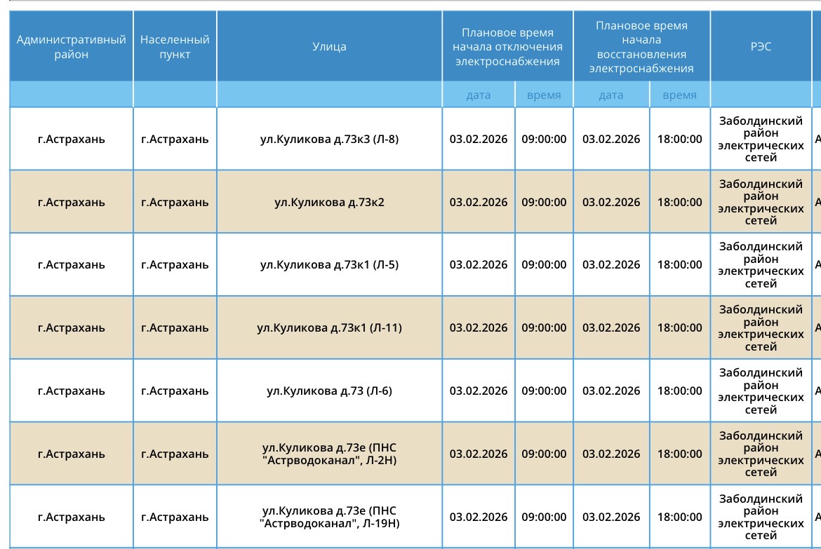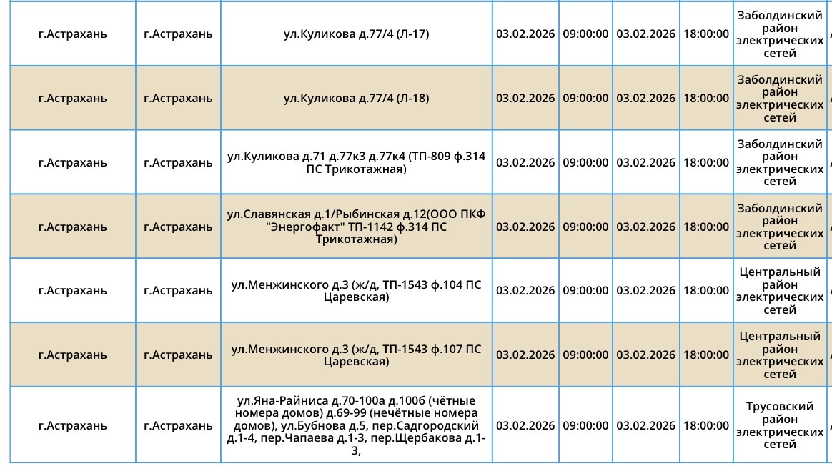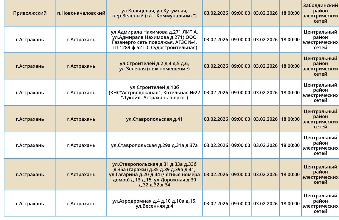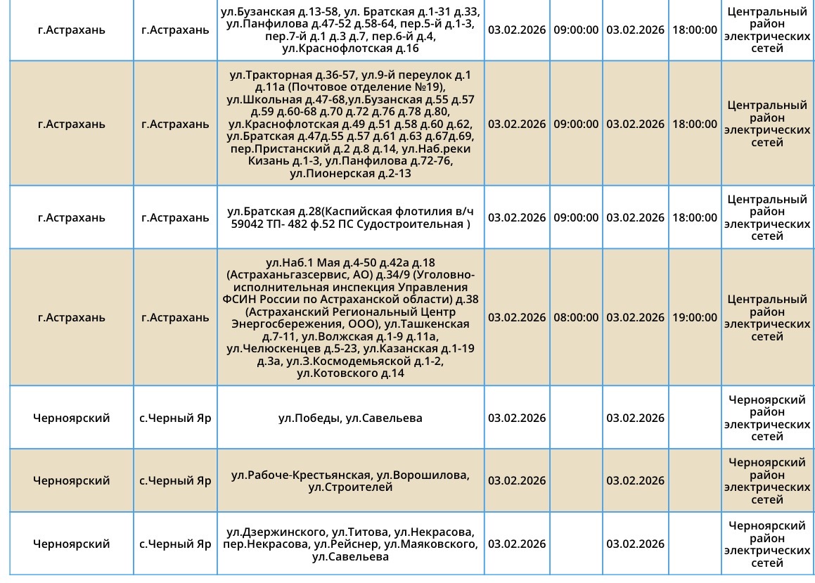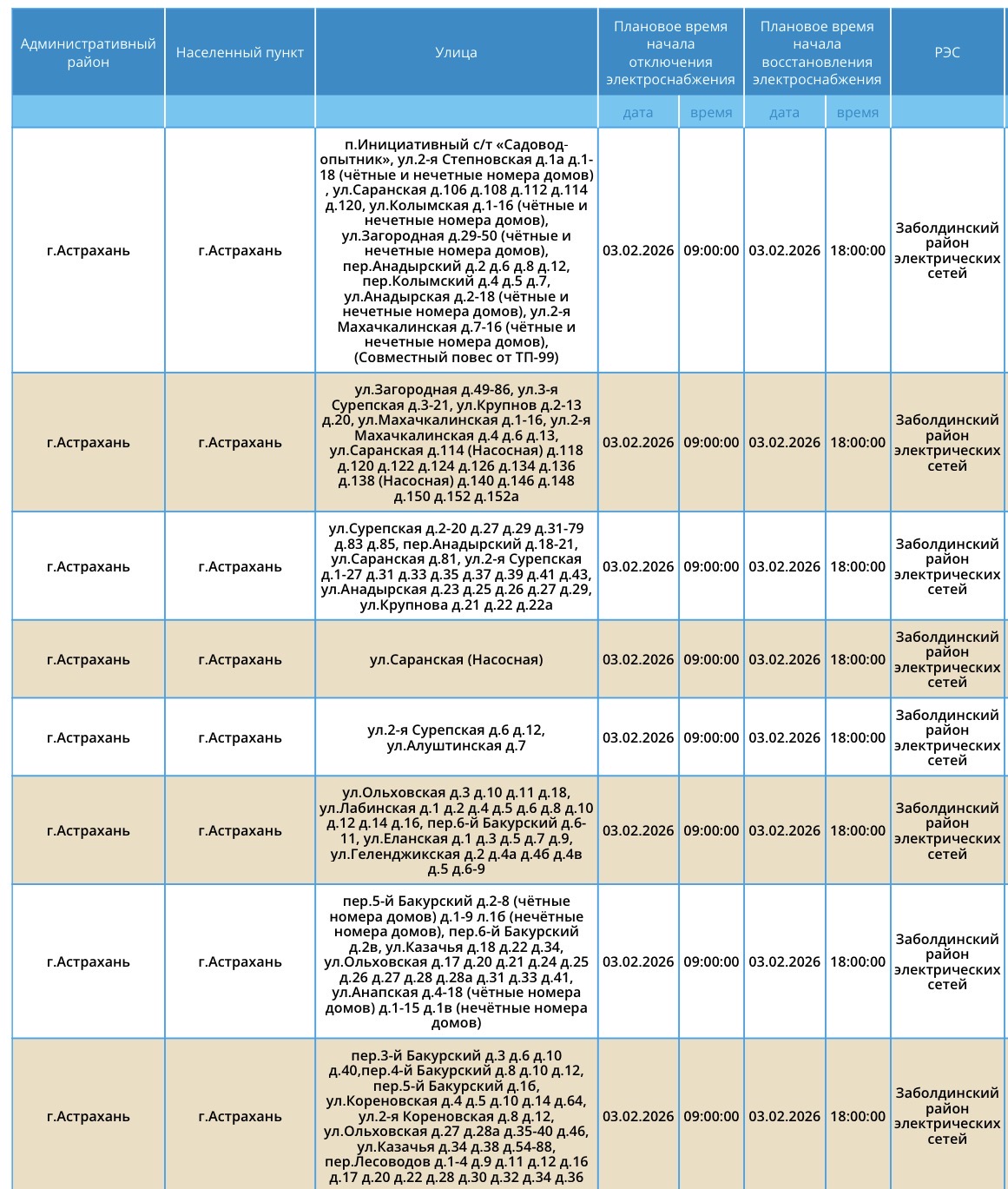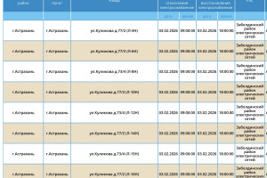 3 февраля в Астраханской области пройдут массовые отключения электроэнергии02 февраля 2026 года, 19:40
