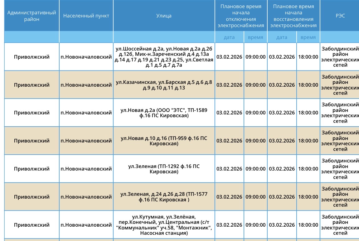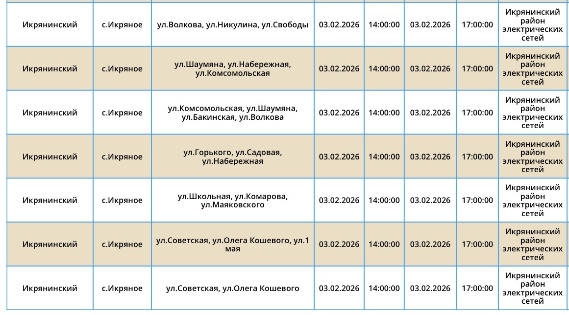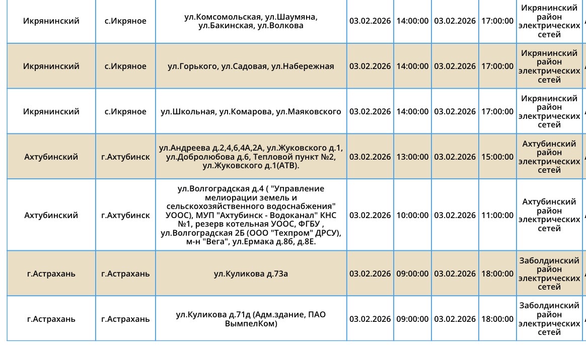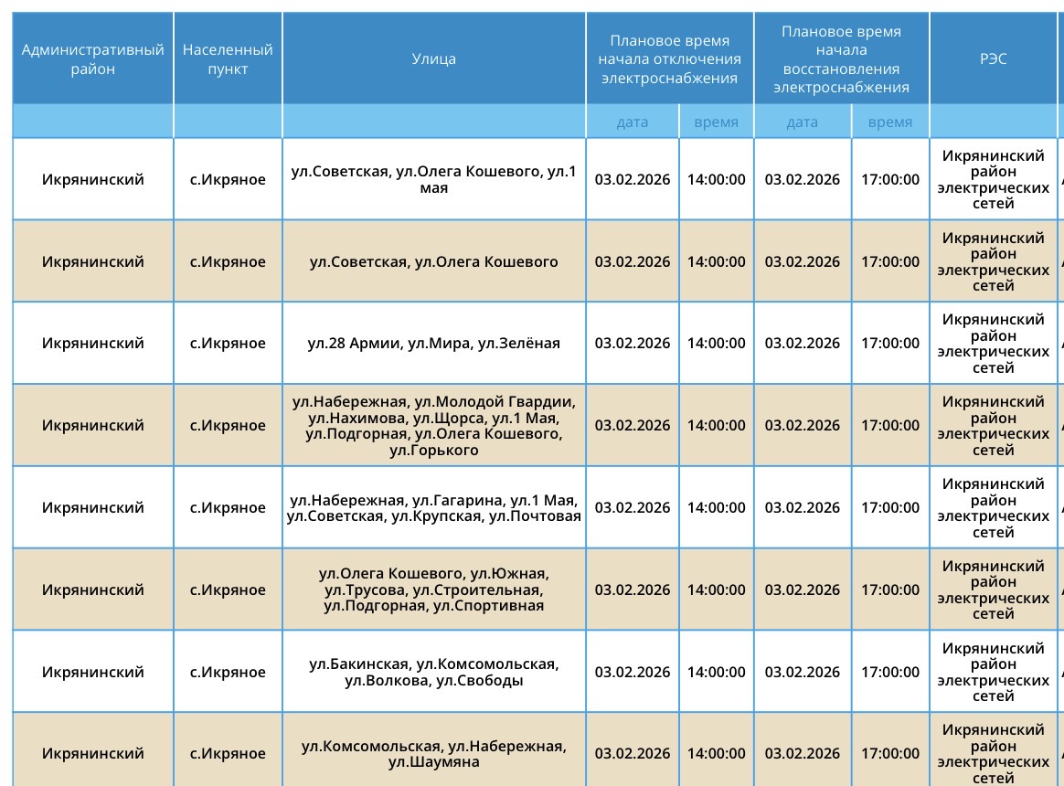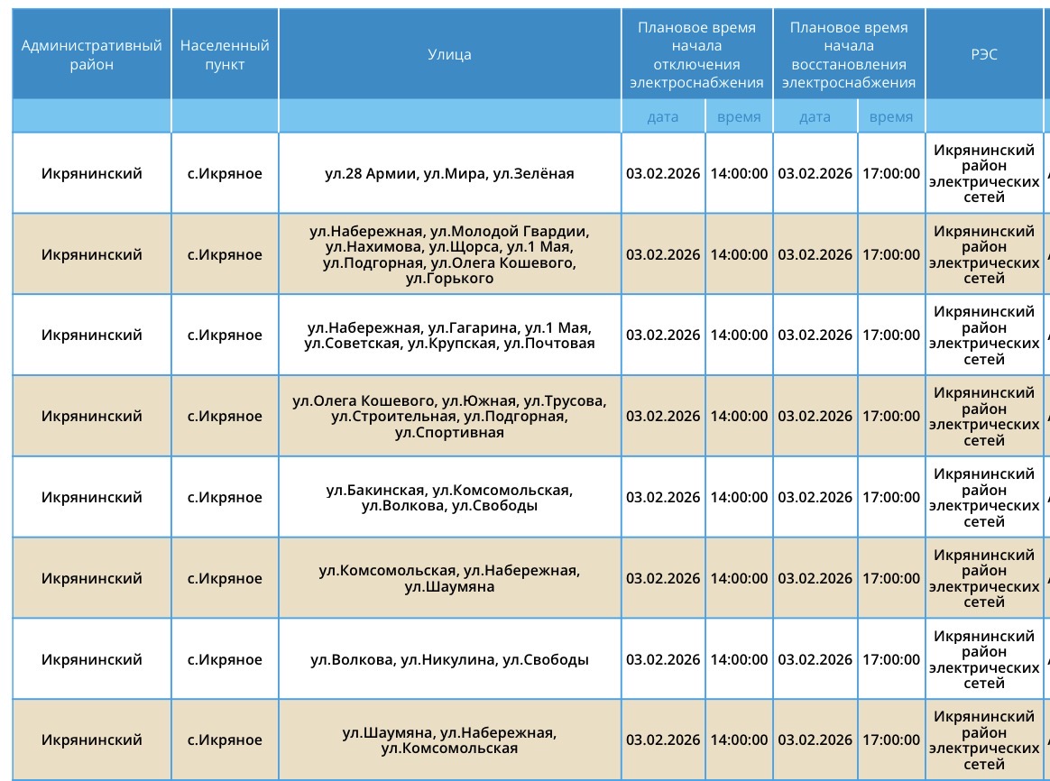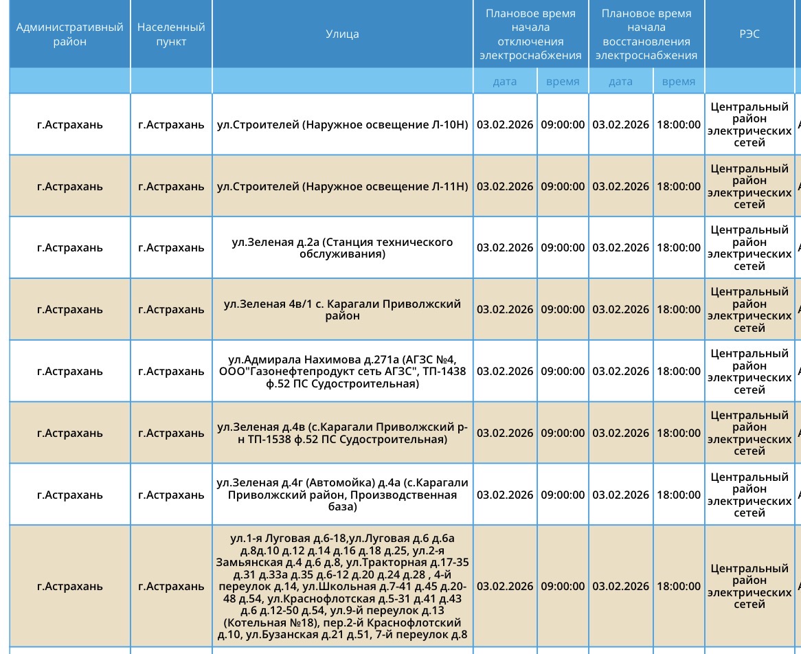 3 февраля в Астраханской области пройдут массовые отключения электроэнергии02 февраля 2026 года, 19:40