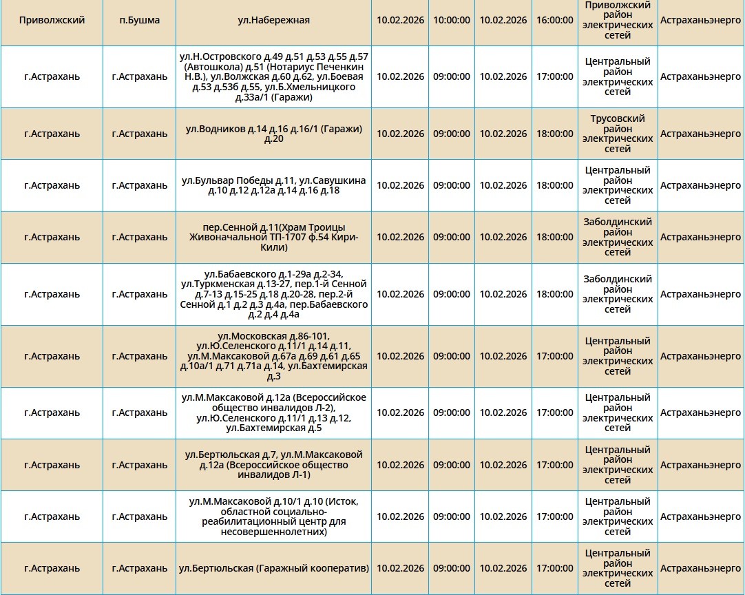 10 февраля многие астраханцы останутся без электричества09 февраля 2026 года, 20:30