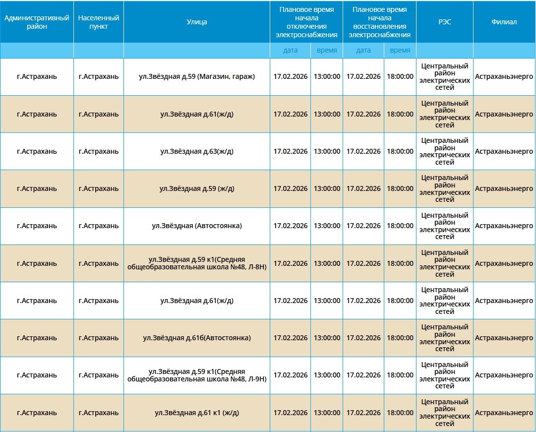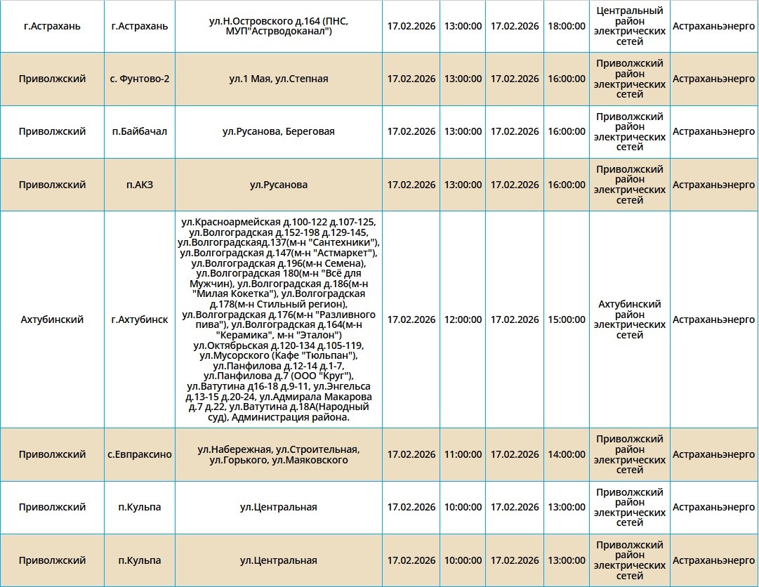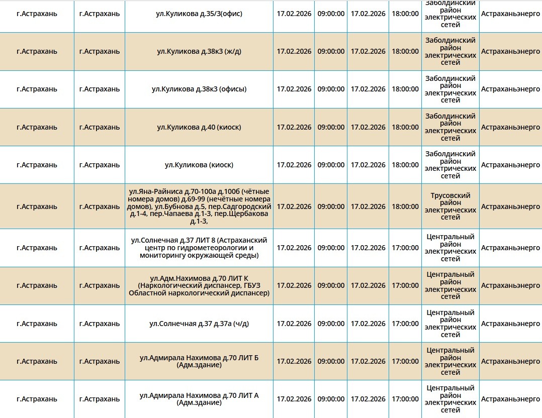 17 февраля в Астрахани и трех районах области отключат свет16 февраля 2026 года, 20:30