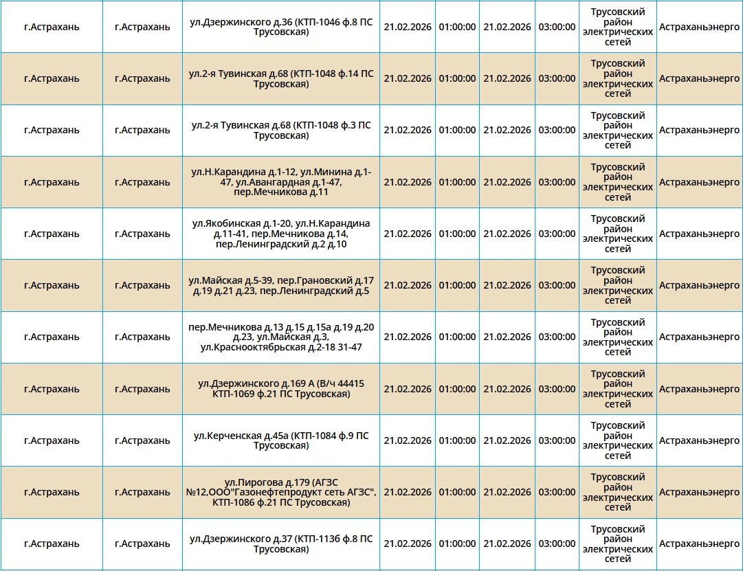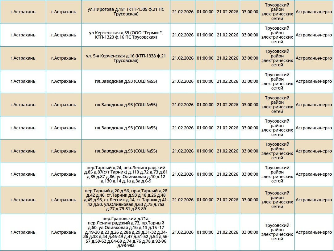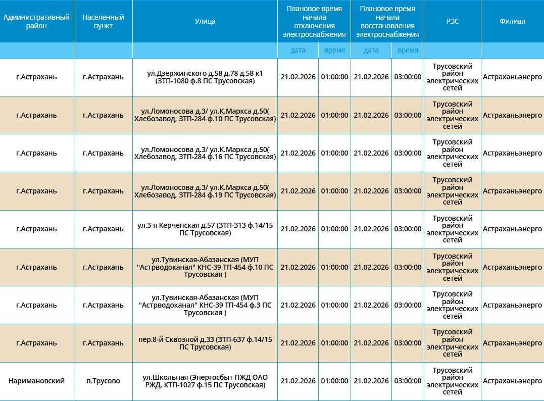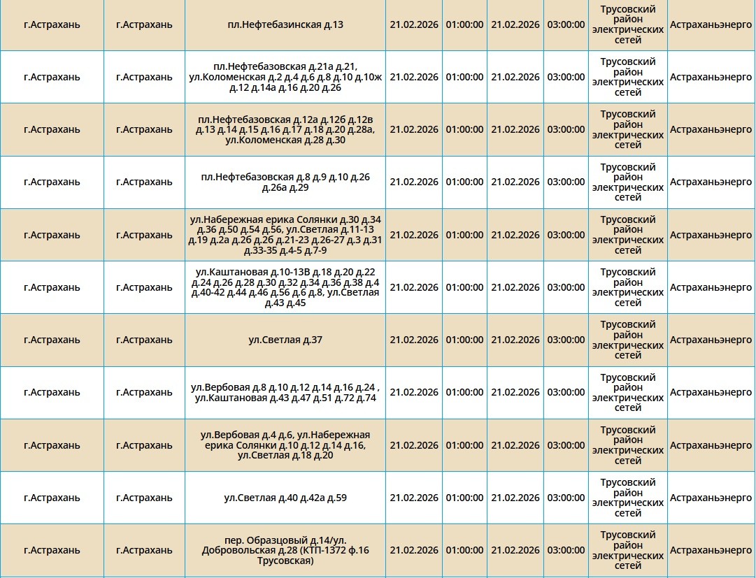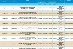 21 февраля астраханцев ждут массовые отключения электроэнергии20 февраля 2026 года, 20:40