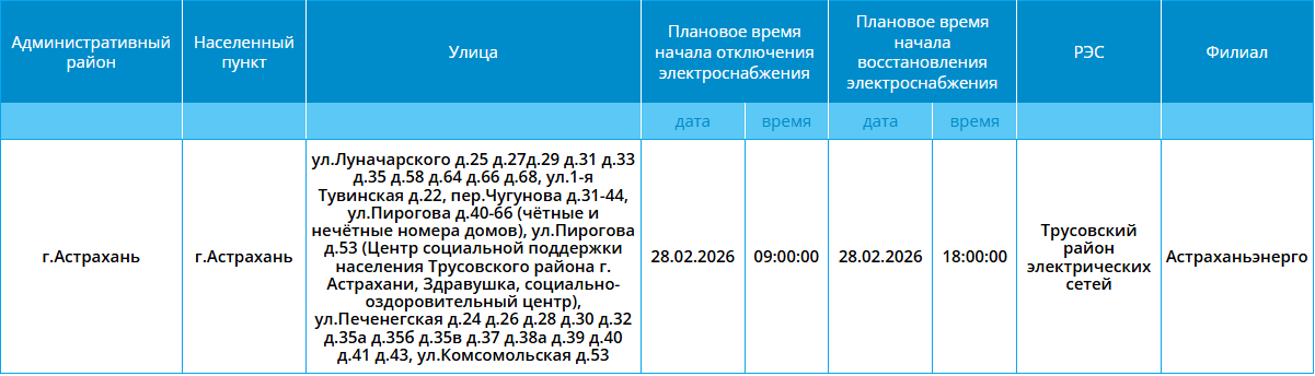 28 февраля некоторые астраханцы останутся без электричества27 февраля 2026 года, 19:30