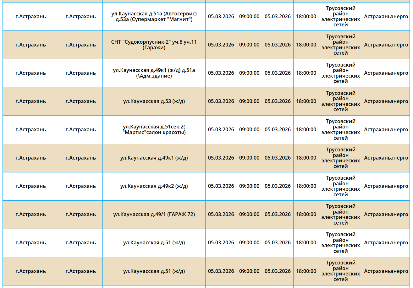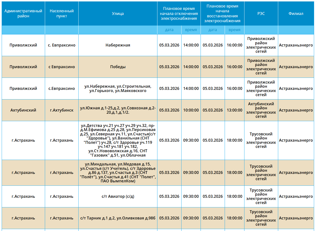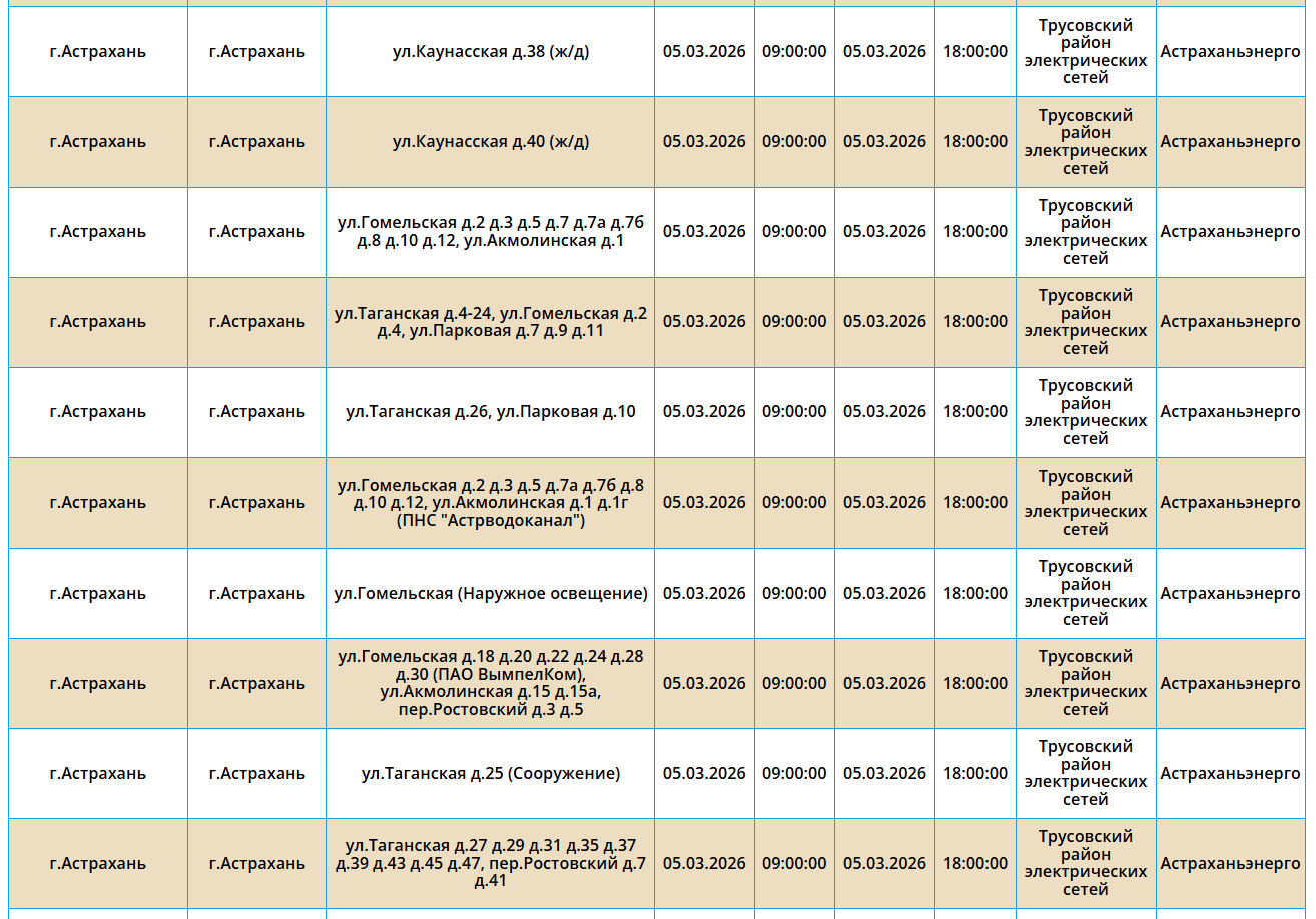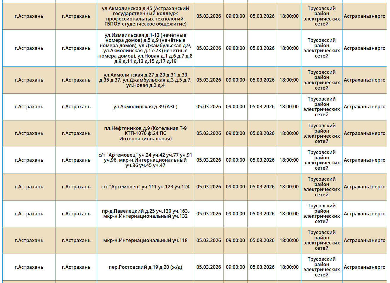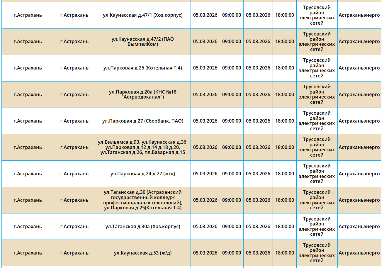 5 марта в Астрахани и трех районах области пройдут плановые отключения света05 марта 2026 года, 00:01