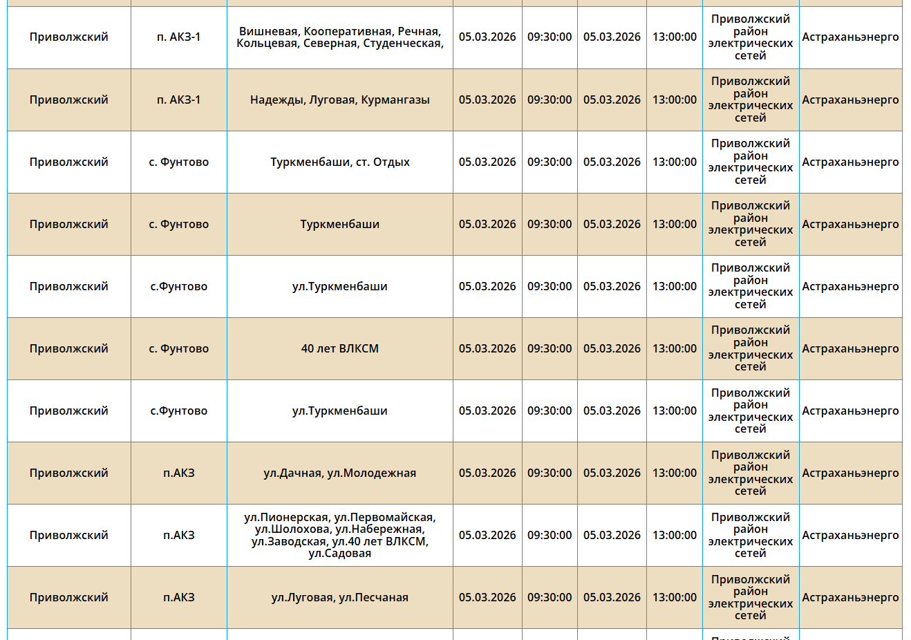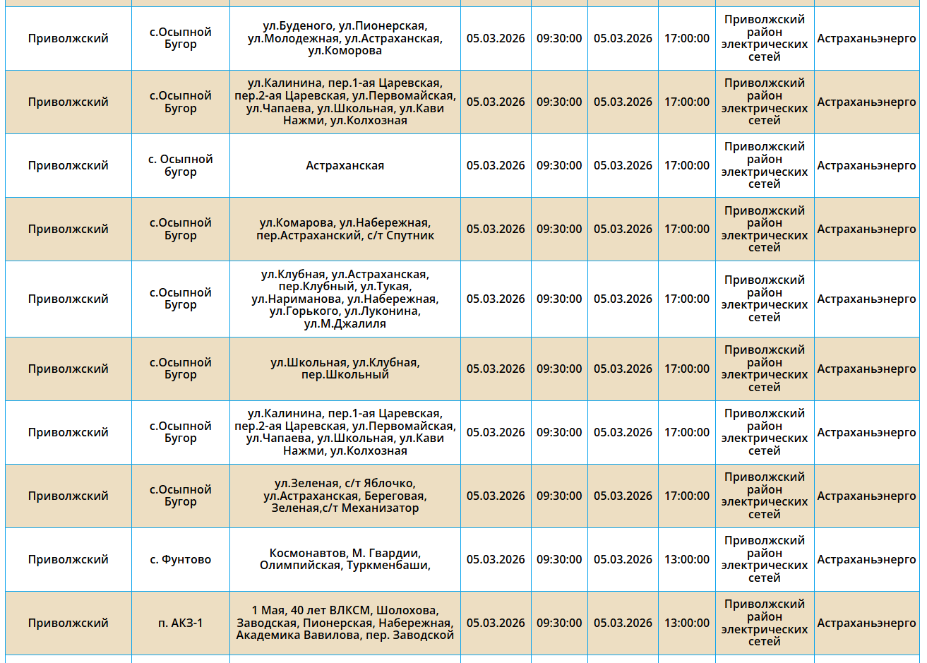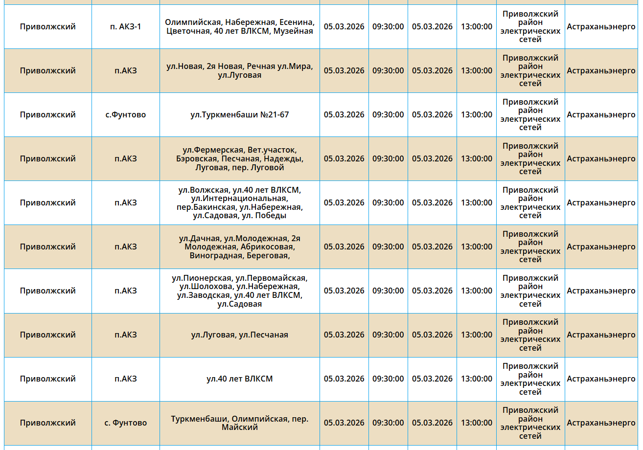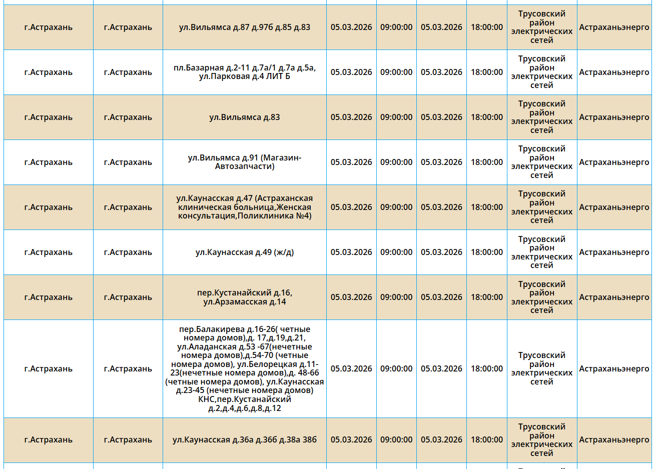 5 марта в Астрахани и трех районах области пройдут плановые отключения света05 марта 2026 года, 00:01
