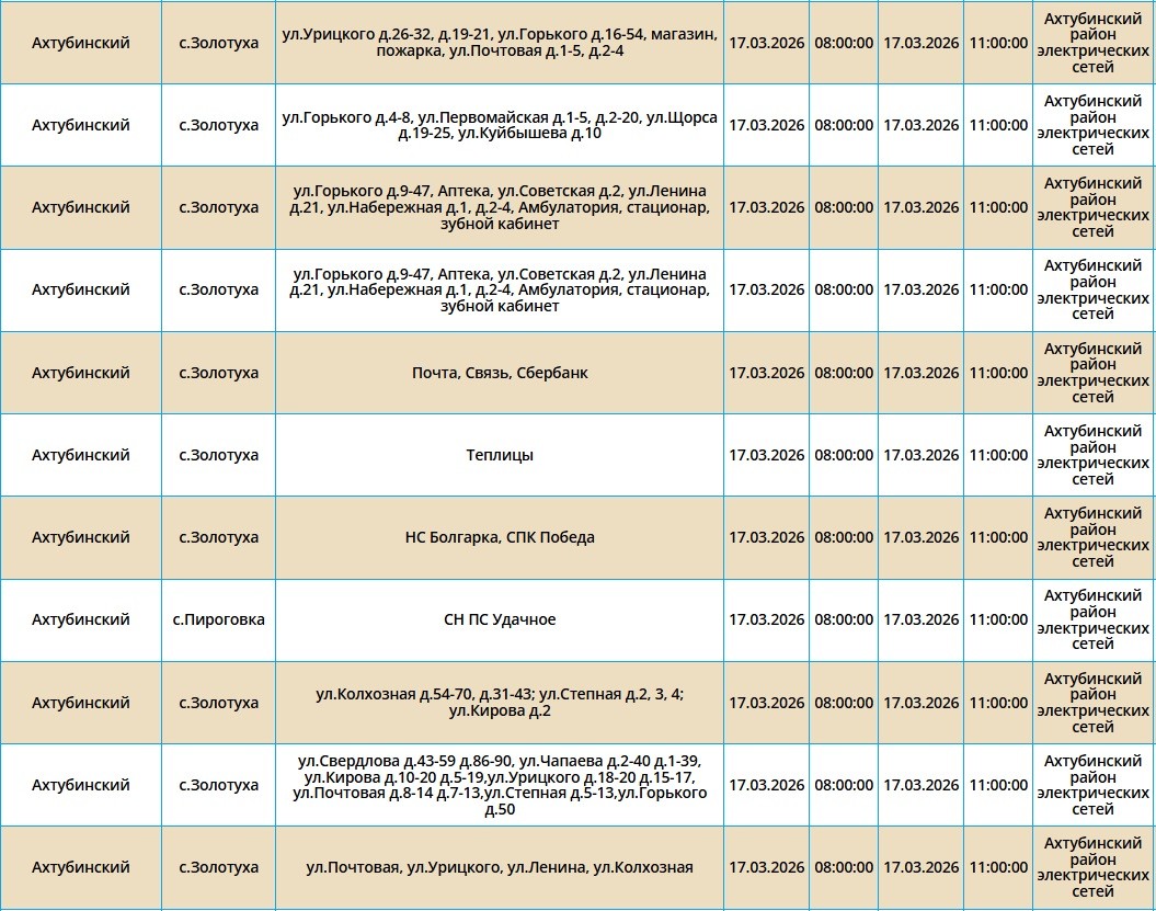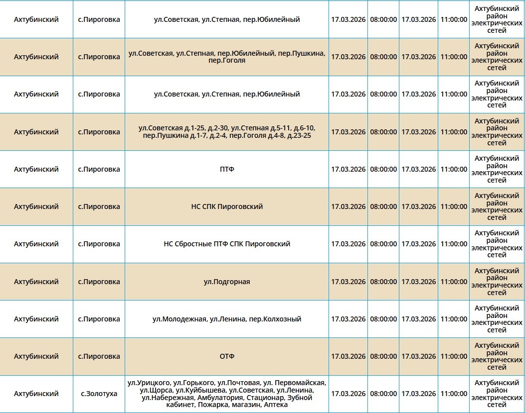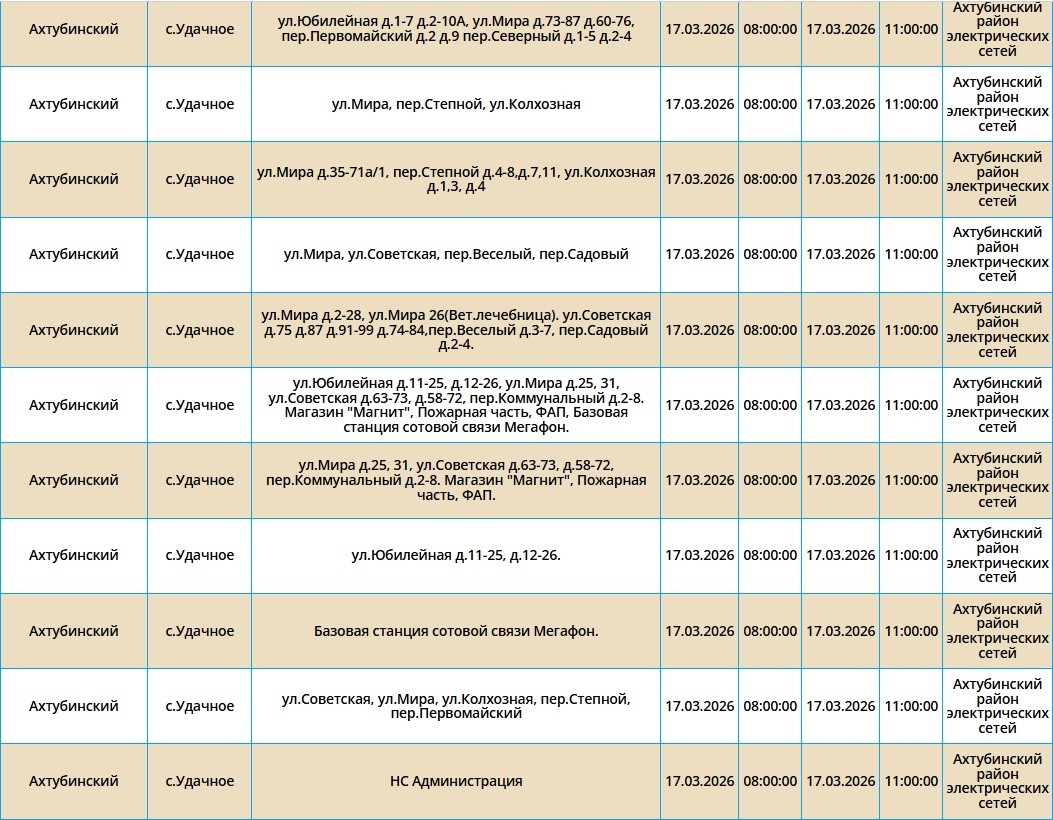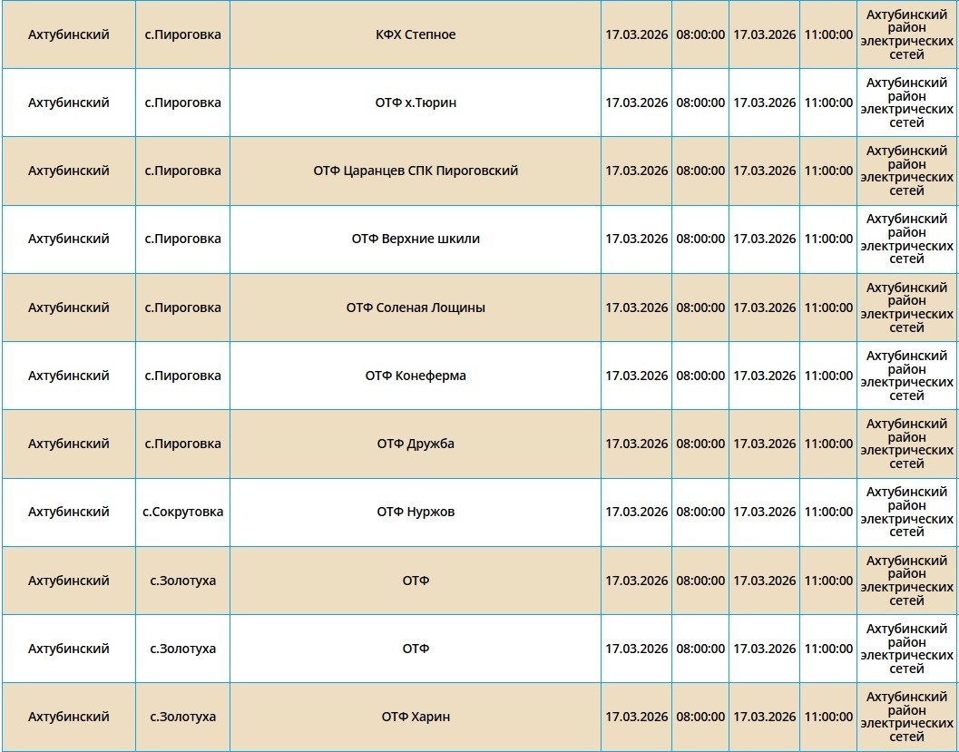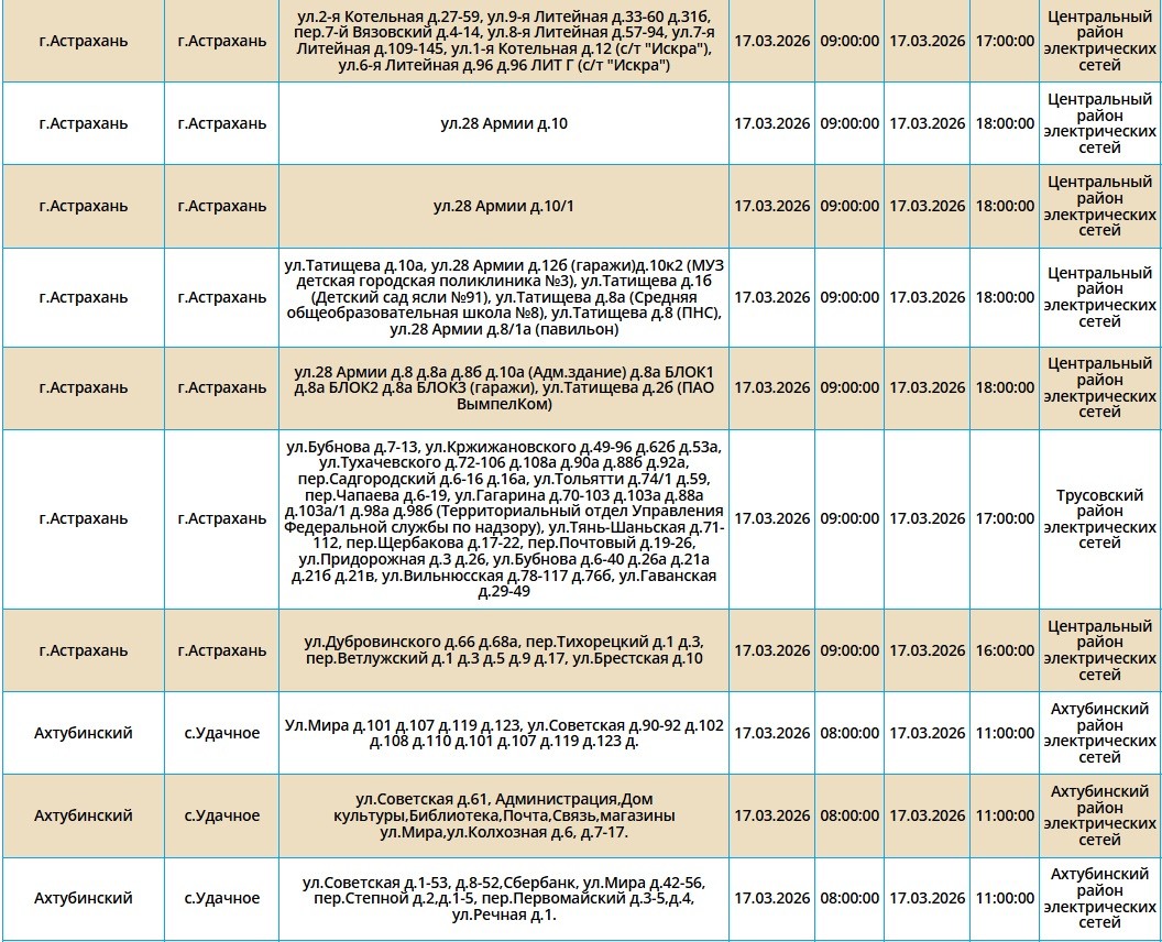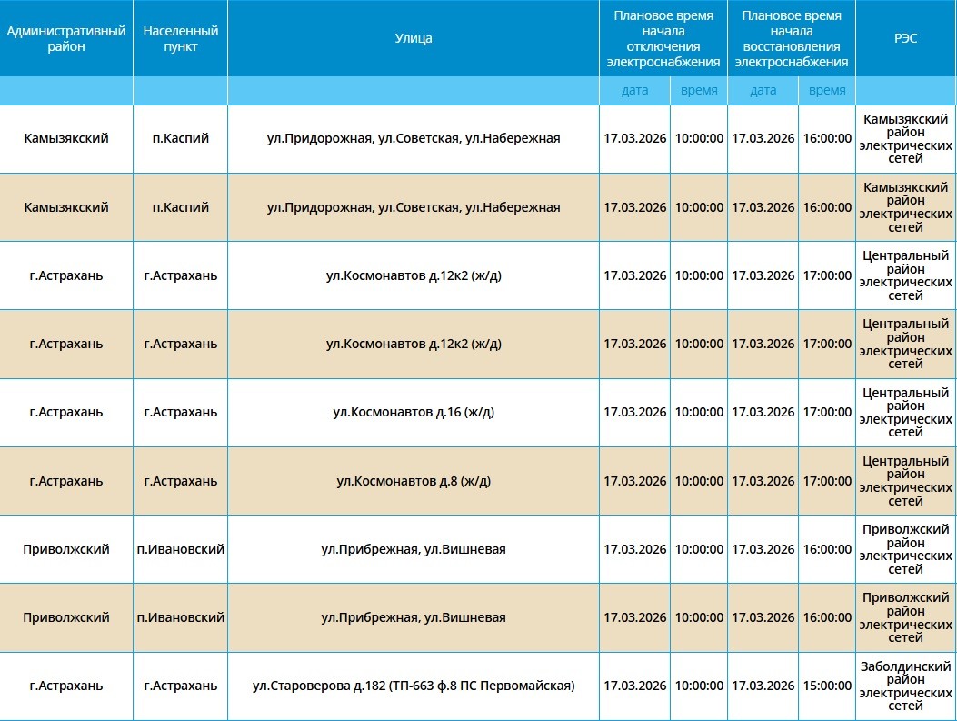 17 марта в Астраханской области ожидаются массовые отключения света17 марта 2026 года, 00:11