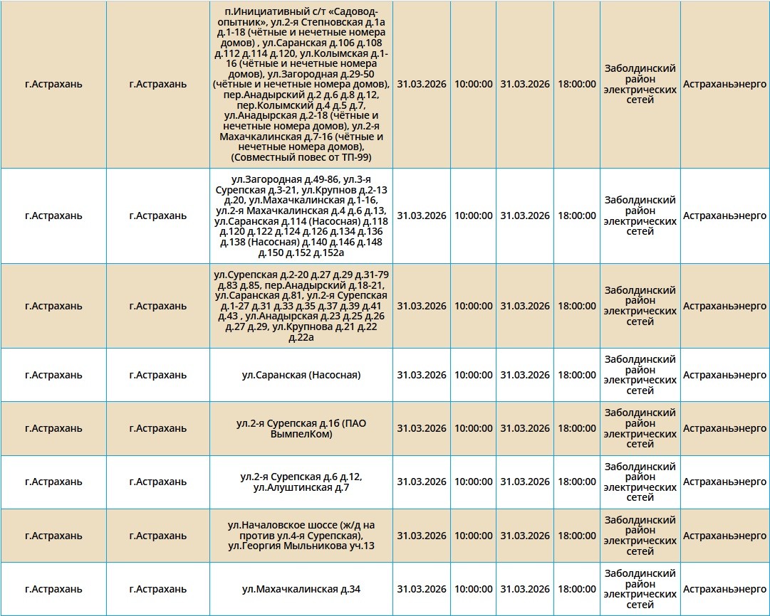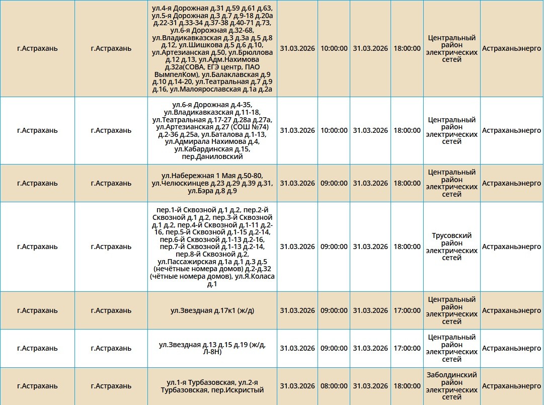 31 марта тысячи астраханцев проведут без электроэнергии03 апреля 2026 года, 03:32