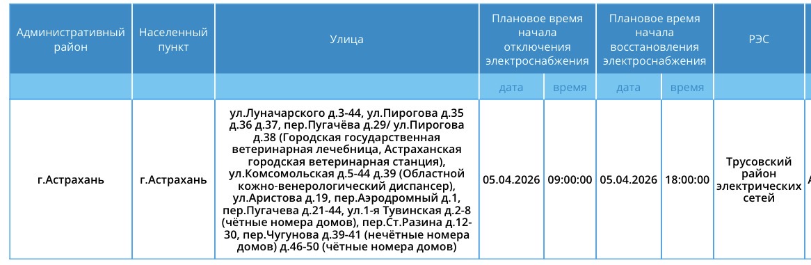 5 апреля некоторые астраханцы останутся без света04 апреля 2026 года, 20:31
