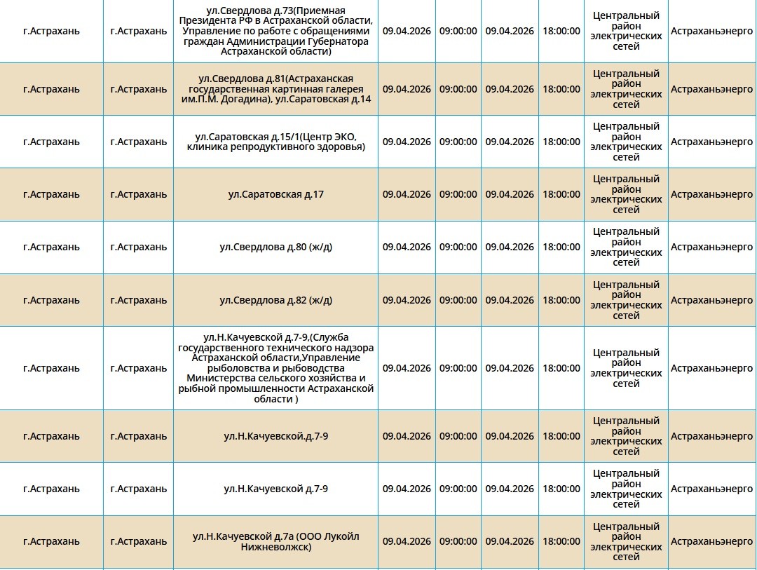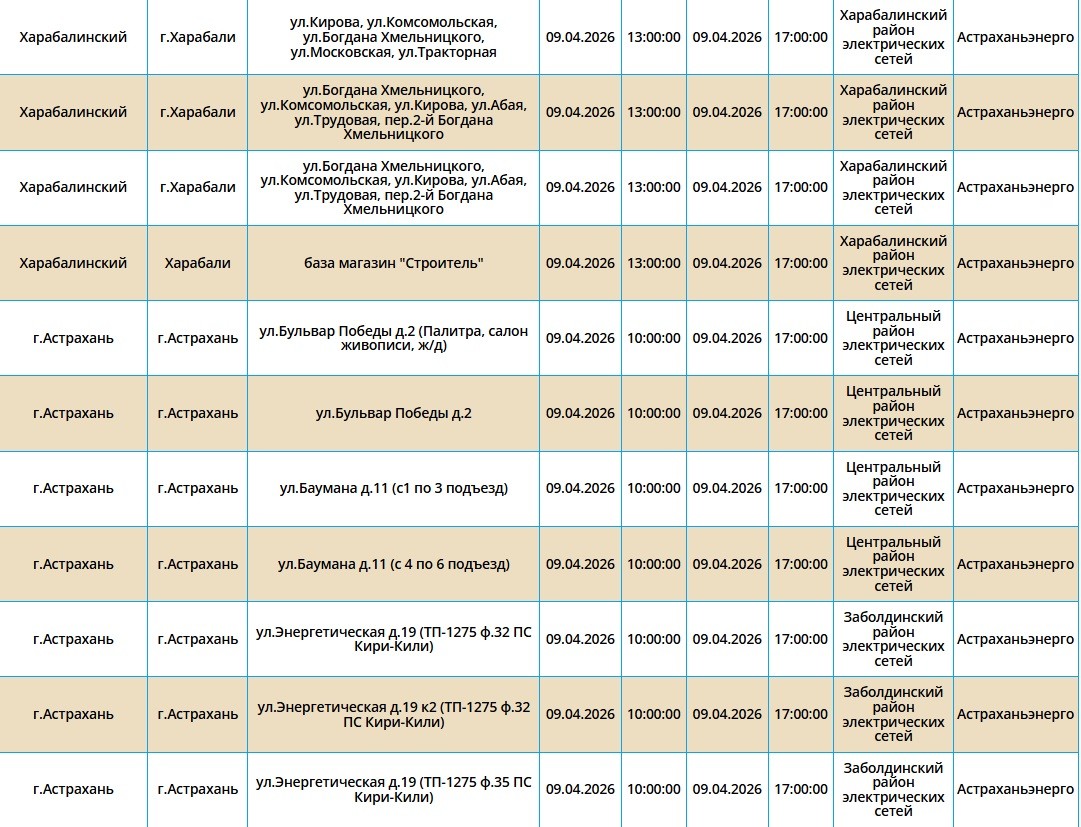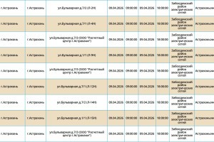 9 апреля в Астрахани и Харабалях временно отключат электроэнергию08 апреля 2026 года, 20:41