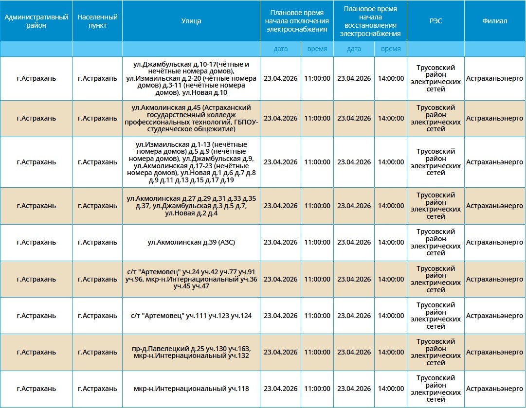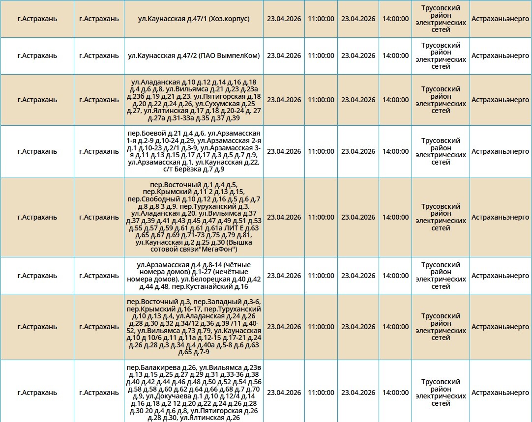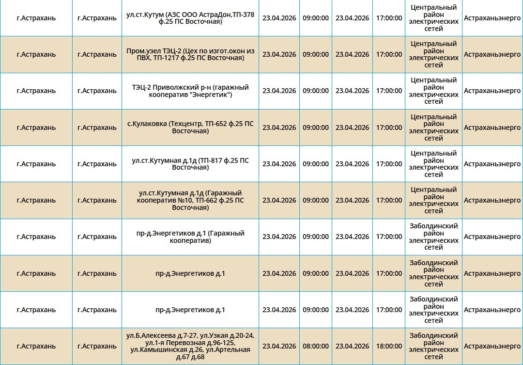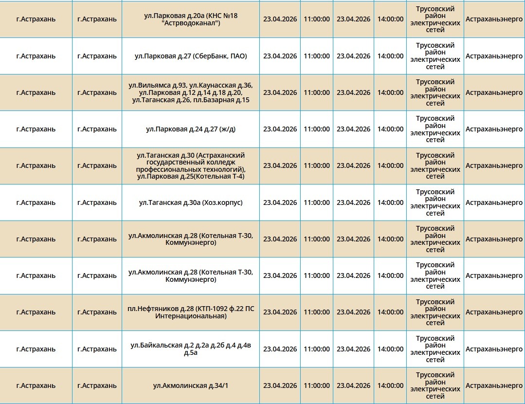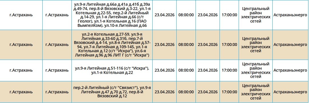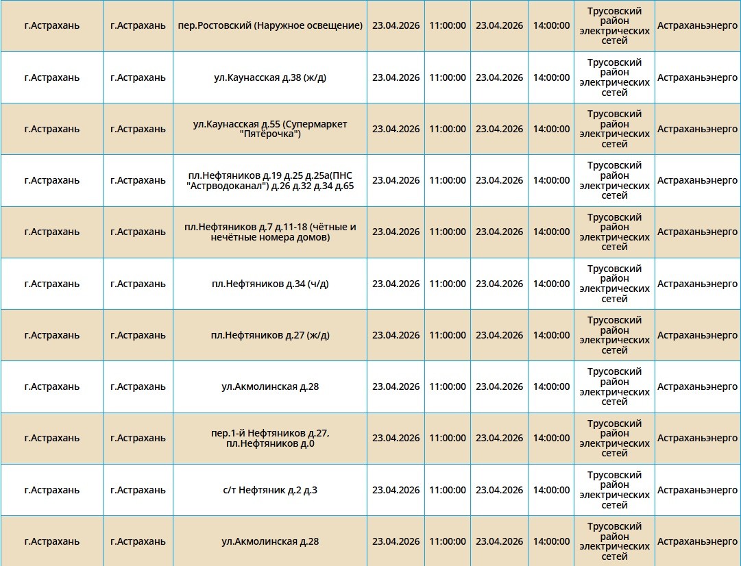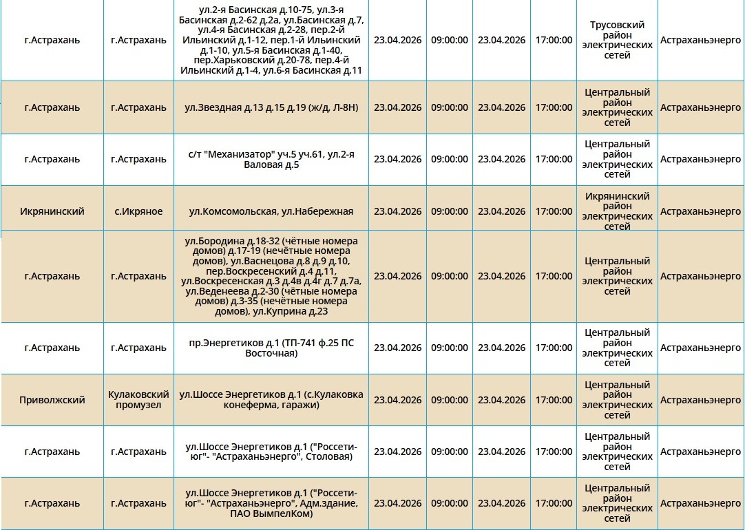 23 апреля в Астраханской области пройдут массовые отключения света22 апреля 2026 года, 20:31