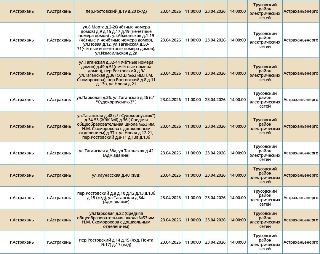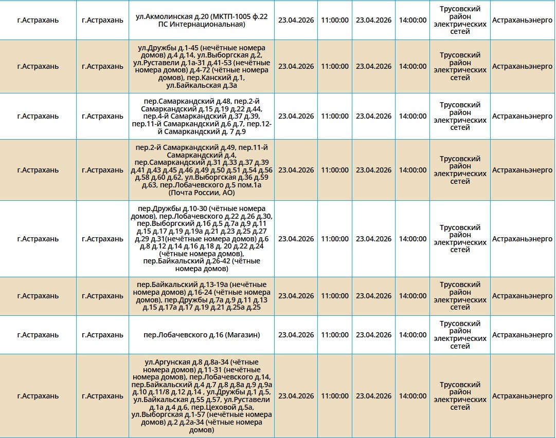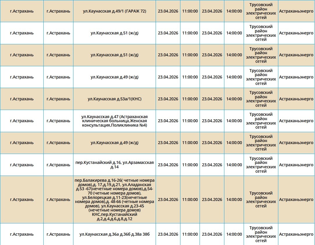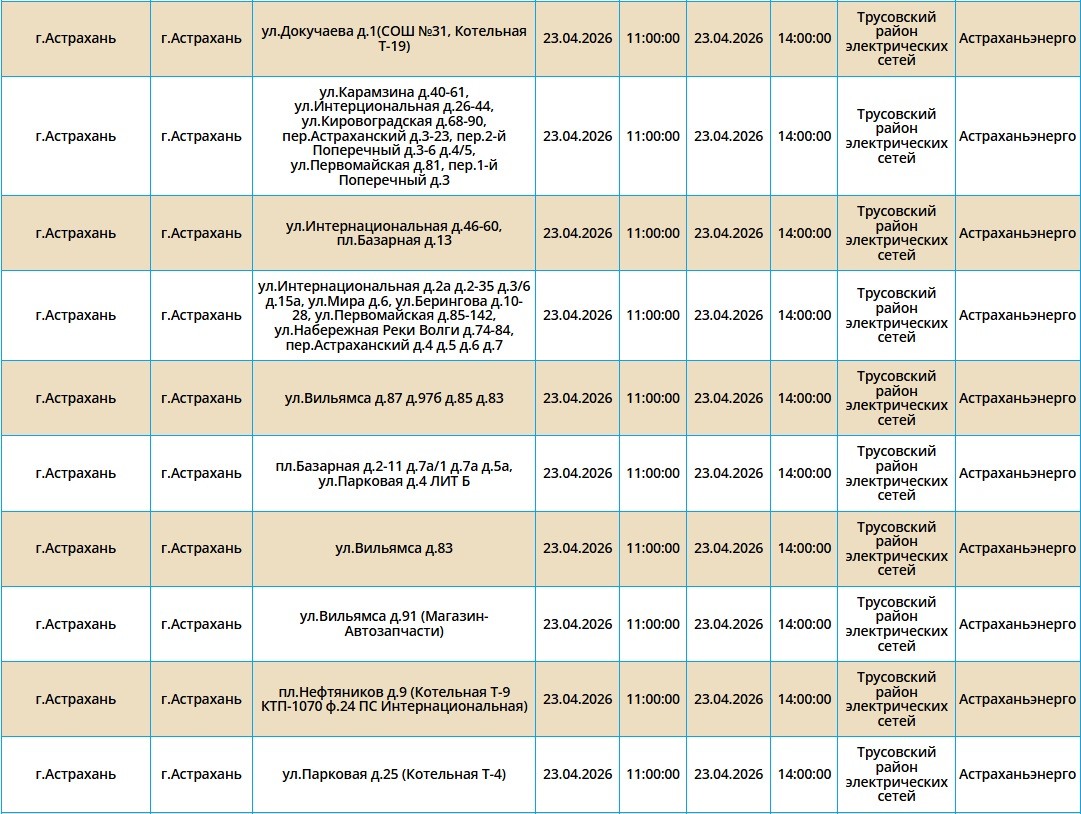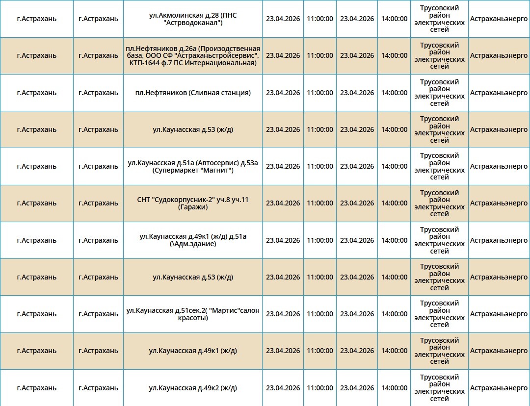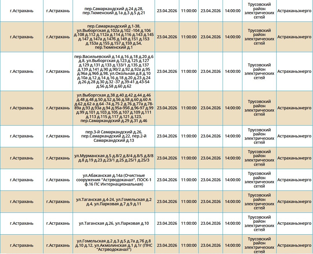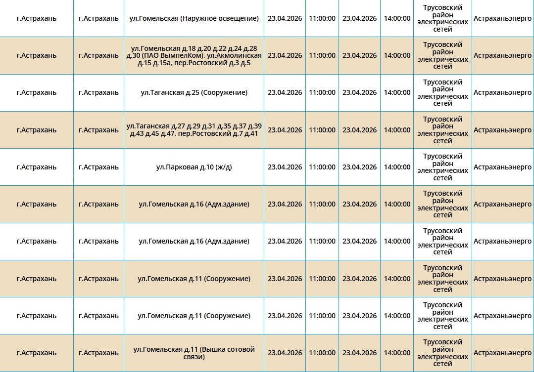 23 апреля в Астраханской области пройдут массовые отключения света22 апреля 2026 года, 20:31