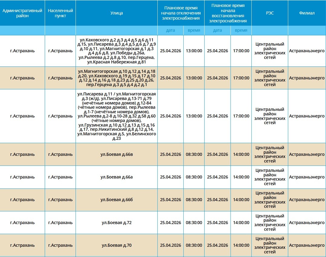 25 апреля на центральных улицах Астрахани отключат электроэнергию24 апреля 2026 года, 20:42
