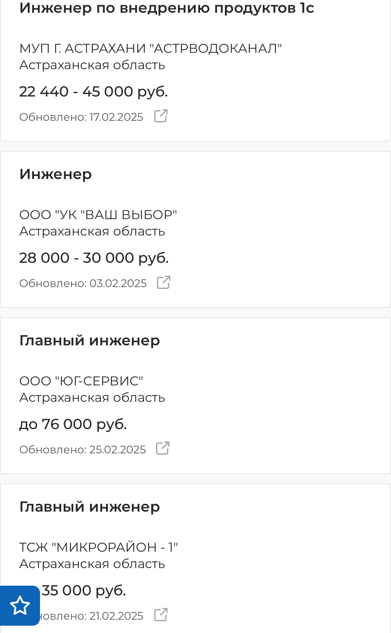 В Астраханской области продолжается еженедельный проект «Топ профессий». Благодаря ему граждане могут найти хорошую работу по востребованным специальностям. Сейчас Астраханское агентство по занятости населения представило профессию «инженер».На портале «Работа России» разместили 103 вакансии для инженеров. Заработная плата достигает 60 тысяч рублей в месяц. Больше всего рабочих мест предлагает ПАО «Россети Юг» - «Астраханьэнерго», «Южный центр судостроения и судоремонта», центр судоремонта «Звездочка», Ахтубинский судостроительно-судоремонтный завод. Требуются инженеры в МУП «Астрводоканал», а также в районных администрациях, больницах и школах. Важно, чтобы у астраханцев было высшее или среднее техническое образование, а также знание нормативной документации, дисциплинированность. Подробную информацию о вакансиях можно узнать на портале «Работа России». Проанализировав вакансии, становится понятно, с чем связан дефицит кадров - небольшая зарплата. Государственные предприятия, УК и ТСЖ предлагают в среднем 25 тысяч рублей в месяц, а вот крупные организации платить готовы по 70 тысяч рублей ежемесячно. Но и попасть туда достаточно тяжело. Замкнутый круг.