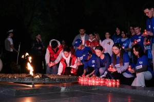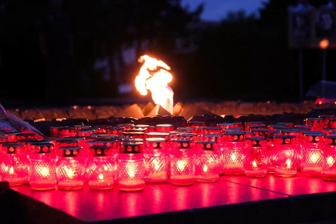 Сегодня в 4 часа утра в Братском саду у Вечного огня почтили память павших воинов и отдали дань подвигу советского народа, победившего в Великой Отечественной войне. В рамках всероссийской акции «Свеча памяти» вице-губернатор - руководитель администрации губернатора области Павел Паутов, ветераны СВО, депутаты, общественные деятели, волонтеры и поисковики поставили лампадки у мемориала в Братском саду. Астраханцы также выложили картину из более 3500 свечей - это ежегодная международная акция «Огненные картины войны». На изображении - колокольня Астраханского кремля, на фоне которого бойцы готовятся к отправке на фронт. Венчает картину надпись «Астрахань помнит. 1941-1945». В период Великой Отечественной войны из Астраханской области на фронт отправились почти 160 тысяч человек. К сожалению, половина из них не вернулась с поля боя. 127 наших земляков были удостоены звания Героя Советского Союза, а 20 стали полными кавалерами ордена Славы. В честь героев-астраханцев в регионе названы более 30 улиц. Кроме того, тысячи астраханцев своим самоотверженным трудом приближали Победу в тылу. Местные жители трудились на заводах, снабжая фронт боеприпасами, спасали раненых бойцов в госпиталях. По инициативе губернатора области Игоря Бабушкина, при поддержке Президента РФ Владимира Путина в мае этого года в областном центре открыли стелу «Город трудовой доблести».