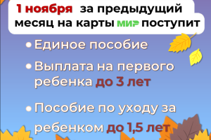 Некоторые «детские» выплаты за октябрь поступят на банковские счета астраханцев несколько раньше обычного. Изменения связаны с праздничными выходными. Перечисления осуществляются в новом месяце за предыдущий. Если дата выплат выпадает на выходные или праздники, то деньги переводят накануне в рабочий день. Поэтому единое пособие, выплату на первого ребенка до 3 лет и пособие по уходу за ребенком до 1,5 лет для неработающих родителей, которые обычно приходят 3 числа каждого месяца, перечислят на два дня раньше - 1 ноября. В другой день придет и пособие по уходу за ребенком до 1,5 лет для работающих родителей. Вместо 8 ноября деньги поступят на банковские счета 7 ноября, в пятницу. А вот ежемесячная выплата из материнского капитала за ребенка до 3 лет осталась без изменений. Ее граждане получат 5 числа. Деньги зачисляются в течение всего дня. В связи с этим, если деньги не поступят на счет утром, дождитесь окончания дня. Доставка «детских» выплат через «Почту России» будет осуществляться в соответствии с графиком работы конкретного почтового отделения. По всем вопросам обращайтесь в единый контакт-центр по телефону: 8(800)100‐00‐01. Операторы готовы ответить в будние дни с 08:00 до 17:00.
