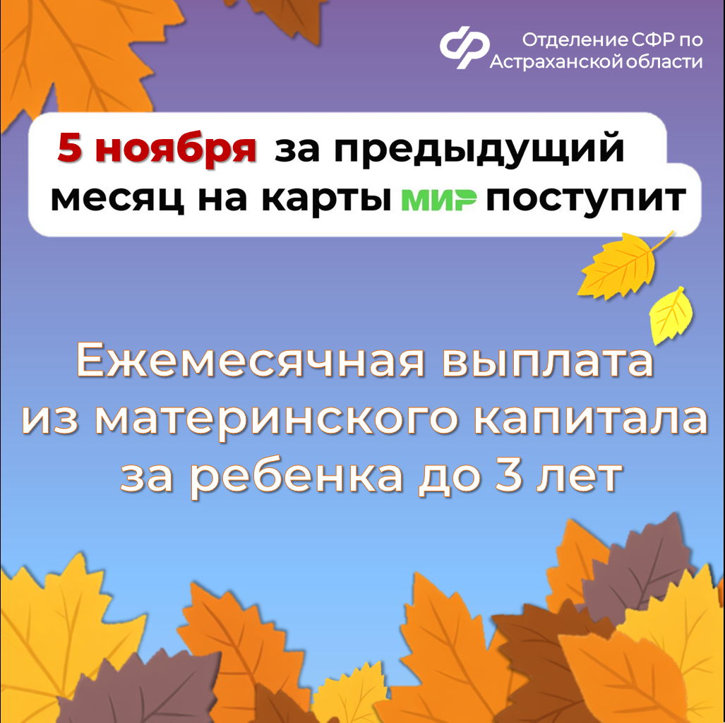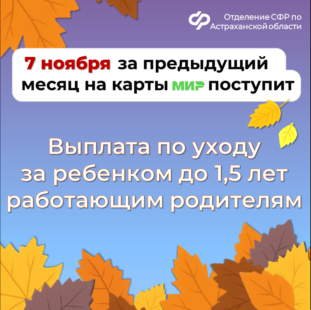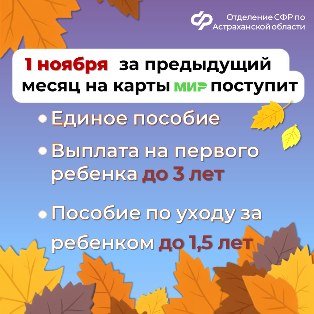 Некоторые «детские» выплаты за октябрь поступят на банковские счета астраханцев несколько раньше обычного. Изменения связаны с праздничными выходными. Перечисления осуществляются в новом месяце за предыдущий. Если дата выплат выпадает на выходные или праздники, то деньги переводят накануне в рабочий день. Поэтому единое пособие, выплату на первого ребенка до 3 лет и пособие по уходу за ребенком до 1,5 лет для неработающих родителей, которые обычно приходят 3 числа каждого месяца, перечислят на два дня раньше - 1 ноября. В другой день придет и пособие по уходу за ребенком до 1,5 лет для работающих родителей. Вместо 8 ноября деньги поступят на банковские счета 7 ноября, в пятницу. А вот ежемесячная выплата из материнского капитала за ребенка до 3 лет осталась без изменений. Ее граждане получат 5 числа. Деньги зачисляются в течение всего дня. В связи с этим, если деньги не поступят на счет утром, дождитесь окончания дня. Доставка «детских» выплат через «Почту России» будет осуществляться в соответствии с графиком работы конкретного почтового отделения. По всем вопросам обращайтесь в единый контакт-центр по телефону: 8(800)100‐00‐01. Операторы готовы ответить в будние дни с 08:00 до 17:00.