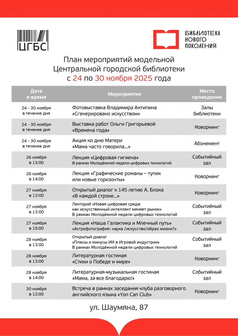 В преддверии Дня матери, который отмечается в России ежегодно в последнее воскресенье ноября, в муниципальных библиотеках Астрахани пройдет ряд интересных тематических мероприятий. Уже 27 ноября библиотеки откроют двери для гостей на целый ряд мероприятий. Например, в филиале №15 пройдет литературно-музыкальная гостиная «Мама - жизни моей начало», участники которой смогут погрузиться в атмосферу творчества, послушать любимые стихи и песни, вдохновленные образом матери. Параллельно, аналогичные события организуют филиалы №2, №9, №11 и №15. 28 ноября состоится интерактивная творческая встреча «Мама, за все благодарю!» в модельной библиотеке на улице Шаумяна, 87. Гостей ждет насыщенная программа с песнями, театрализованными постановками, а также креативными заданиями. Здесь можно проявить талант художника, создав собственный портрет любимой мамы по готовым шаблонам. Тем временем филиал №13 приглашает участников отправиться в увлекательное путешествие по сказкам с квестом «Сказочные мамы», где игрокам предстоит пройти испытания, используя свою фантазию и логическое мышление. Завершит день мастер-класс по изготовлению оригинального подарка своими руками в филиале №17. Финальным аккордом всех праздничных мероприятий станет конкурсно-игровая программа «С любовью к мамам: праздник сердец», которую проведут 30 ноября в модельной библиотеке-филиале №1 на улице Дзержинского, дом 46.