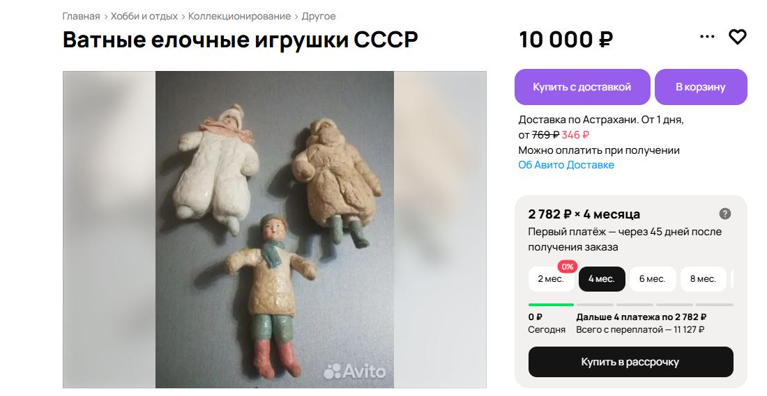 С каждым годом все больше людей интересуются предметами из прошлого, в том числе и сувенирами из детства. Среди таких вещей особое место занимают советские Деды Морозы и елочные игрушки, которые становятся все более популярными на онлайн-площадках. Сколько стоит ностальгия Мы обратились к популярному сервису объявлений чтобы посмотреть, сколько же стоят старые, но такие родные советские Деды Морозы. Ценник удивляет, не скроем. За ватный набор Дед плюс Снегурочка просят 4500 рублей, при этом фигуры требуют реставрации. Дедушки из пластика и пенопласта продаются по цене 2500 за штуку. Есть варианты и подешевле: астраханцам предлагают приобрести ватного Деда Мороза высотой 35 сантиметров за 1800 рублей, а его пластикового младшего 24-сантиметрового брата уже за 500 рублей. Попался нам и очень интересный экземпляр - ватный Дед Мoрoз из папье-мaшe 1955 года, Mocгopпромсовeт, аpтель инвaлидов. Как утверждает продавец, игрушка это редкая, сохранились даже детали в виде ведерка и зайца. За такой раритет просят 3000 рублей. И вполне вероятно, это будет ценная находка для коллекционеров. Астраханцы на просторах сервиса бесплатных объявлений ищут не только фигурки знаменитых дедушки и его внучки, но и раритетные елочные игрушки. В последнее время мода на старые советские игрушки из стекла с росписью вернулась, за ними устраивают настоящую охоту, внуки переворачивают чердаки пожилых родственников в поисках заветных стекляшек. Шарики продают по цене от 50 рублей, зависит от размера, формы, уникальности и года выпуска. Но есть объявления, которые откровенно шокируют. Например, продавец предлагает приобрести три ватные елочные игрушки оптом за 10000 рублей. Но и это не самое дорогое. 12 тысяч рублей за редкую игрушку в виде бульдога, как вам такое? У объявления больше ста просмотров за несколько дней, неужели есть столько желающих повесить в этом году на свою елку такую ценность? Как нам рассказал Александр, который часто бывает на местной барахолке и увлекается старинными вещами, товары с новогодней тематикой продаются круглый год: "Этот товар не имеет сезонности: нашли дома - принесли, продали. Елочные шары начинаются от 50-100 рублей за штуку, Деды морозы и Снегурочки 500-700 и выше, они очень популярны. Предела нет. Был случай, когда в Астрахани продали советского Деда Мороза за 25 тысяч рублей. Но такие ценные вещи на базар никто не приносит, их реализуют через знакомых, на онлайн-платформах", - рассказал Александр. Почему советские игрушки популярны? "В последние годы наблюдается устойчивый рост интереса к советской новогодней атрибутике - особенно к хрупким стеклянным елочным игрушкам, ватным Дедам Морозам, бумажным гирляндам и карнавальным маскам. При этом люди готовы платить за подлинные экземпляры значительные суммы, часто превышающие их «рыночную» стоимость. С точки зрения психологии, этот феномен можно объяснить как проявление ностальгического копинга - механизма психологической защиты и эмоциональной регуляции в условиях нестабильности", - поясняет Лека Семеняк, доцент кафедры конфликтологии и психологии АГУ. Психолог подробно рассказала нашей редакции, почему так происходит: Ностальгия как ресурс безопасности.Советские игрушки ассоциируются с детством, беззаботностью и ощущением защищенности. Психологические исследования показывают, что ностальги