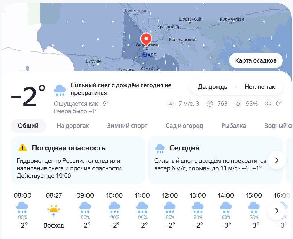 Сегодняшний день для астраханцев пройдет под аккомпанемент сильного снега, который, по данным синоптиков, не прекратится ни утром, ни днем, ни вечером. Осадки будут сопровождаться отрицательной температурой и ветром, а значит - условия на улицах и дорогах обещают быть далеко не комфортными. По прогнозам специалистов, температура воздуха в течение дня будет держаться в пределах -2…-3 градусов, однако ощущаться она будет значительно холоднее - как -9…-10 градусов. Такой контраст создает дополнительные риски: снег быстро укатывается, подтаивает и тут же превращается в лед. Синоптики и экстренные службы уже предупреждают: сочетание снега и минусовой температуры может привести к сложной транспортной ситуации. Гололедица на дорогах, снижение видимости и ухудшение сцепления колес с асфальтом - все это традиционный «набор» для зимних аварий. Особую тревогу вызывает вопрос, насколько городские службы готовы к таким погодным ловушкам. Прошлый снежно-морозный эпизод астраханцы вспоминают с раздражением: коммунальные аварии, скользкие тротуары, неубранные дворы и ДТП, часть которых, по мнению горожан, можно было бы избежать при своевременной и качественной обработке дорог противогололедной смесью. Сегодняшний снег с дождем - своего рода проверка. Удастся ли администрации Астрахани оперативно отреагировать, вывести технику и не допустить повторения прежних ошибок - вопрос, ответ на который жители города будут смотреть не по отчетам, а по собственным ощущениям под ногами и за рулем. При этом сегодняшний снегопад - лишь вступление. Самыми холодными днями, по прогнозам, станут воскресенье, 18 января, и понедельник, 19 января. В эти дни температура днем может опуститься до -9 градусов, а ночью - до -14 градусов. Для Астрахани такие значения уже близки к настоящей зимней классике. Есть и неожиданный плюс: такие морозы могут наконец-то подарить городу настоящий лед на каналах и Лебедином озере - той самой правильной и безопасной толщины, о которой давно мечтают любители катания на коньках. До этого многие астраханцы, несмотря на предупреждения спасателей и администрации, выходили на тонкий лед, рискуя здоровьем и жизнью. Возможно, природа все же даст шанс насладиться зимними радостями без экстрима и сводок МЧС. Так что сегодня Астрахани стоит запастись терпением, теплой одеждой и хорошей обувью, а коммунальным службам лопатами, техникой и оперативностью.