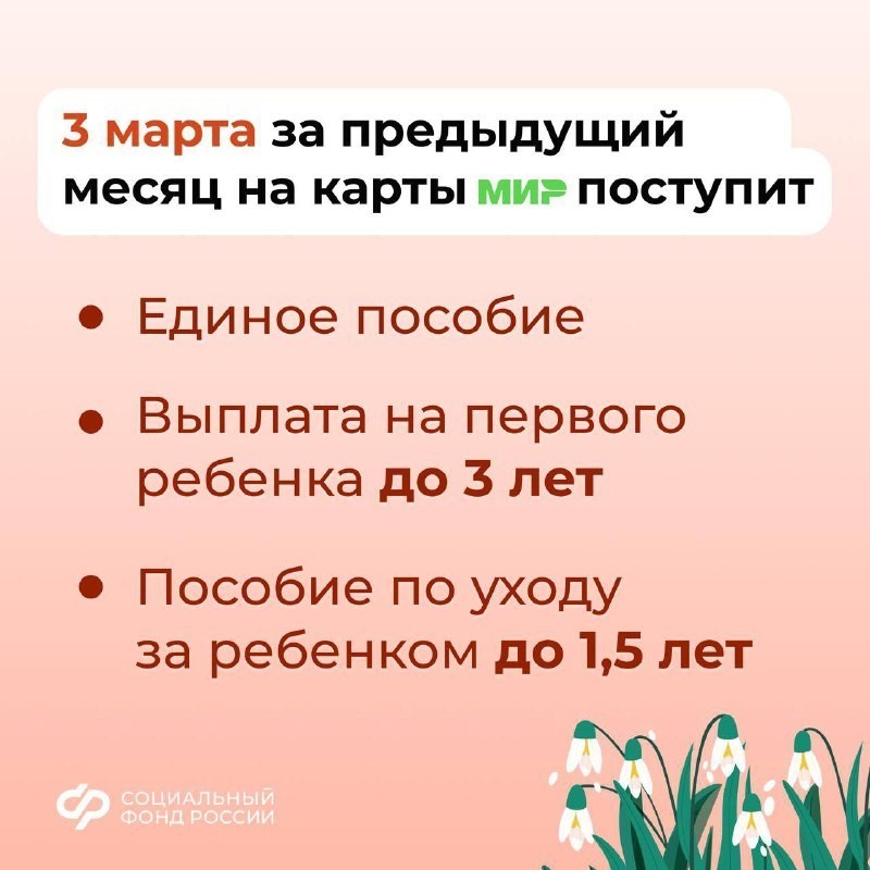 Перечисления осуществляются в новом месяце за предыдущий. Это значит, что в марте вы получаете пособия за февраль. Если дата выплаты выпадает на выходной, то средства переводят на банковские счета заранее, в ближайший рабочий день. В связи с этим в этом месяце пособие по уходу за ребенком до полутора лет для работающих родителей будет перечислено 6, а не 8 числа. 3, 5 и 6 марта - дни зачисления выплат семьям с детьми на карты и счета астраханцев. Обратите внимание, деньги зачисляются в течение всего дня. Если пособия не поступят на счет утром, не стоит волноваться, нужно дождаться поступления средств до окончания дня. По почте пособия приходят с 3 по 25 число месяца в зависимости от графика работы почтового отделения, отметили в региональном отделении Социального фонда РФ.