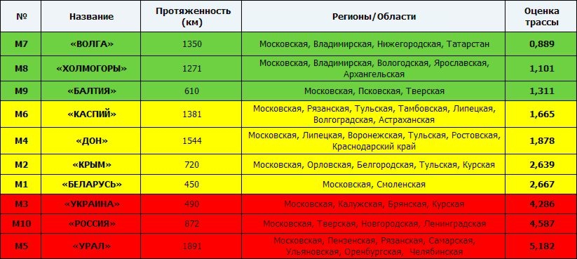 Специалисты Межрегионального общественного центра «За безопасность дорог» составили рейтинг федеральных трасс. Все они условно разделены на три зоны - зеленую, желтую и красную. Трасса М-6 «Каспий», проходящая через Астраханскую, Рязанскую, Тульскую, Тамбовскую, Липецкую, Волгоградскую области, была признана недостаточно безопасной. Также в середину списка вошла трасса М-2 «Крым», которая пересекает Орловскую, Белгородскую, Тульскую и Курскую области, характерна большим количеством ДТП из-за уснувших за рулем водителей в ночное и утреннее время. М-4 «Дон» идет через Липецкую, Воронежскую, Тульскую и Ростовскую области в Краснодарский край. М-1 «Беларусь» - через Смоленскую область до границы с Белоруссией. Особое место по уровню аварийности среди регионов занимает все же Московская область. Там каждое пятое дорожно-транспортное происшествие связано с выездом на встречную полосу и нарушением скоростного режима, что особенно опасно в темное время суток и при плохой видимости. Высока и доля ДТП с участием пешеходов. Основной причиной называют нехватку обычных наземных и надземных пешеходных переходов. Кроме того, аварийность на федеральных трассах носит сезонный характер: с наступлением тепла поток автомобилей в южном направлении возрастает, что может повлиять на статистику происшествий. Причины и пути решения По словам руководителя МОЦ «За безопасность российских дорог» Дмитрия Леонтьева, «Росавтодор» уже много лет анализирует аварийность на федеральных трассах. Совместно с ГИБДД специалисты выявляют участки концентрации ДТП и принимают меры по их устранению. Однако этих усилий пока недостаточно: ежегодно на месте ликвидированных очагов аварийности появляются новые. Рост числа происшествий связан с увеличением трафика, низкой культурой вождения и правовой дисциплиной водителей и пешеходов, а также с высоким уровнем стресса среди участников движения. Дополнительным фактором риска остаются неадекватные действия междугородних перевозчиков, которые зачастую ставят коммерческую выгоду выше безопасности. Одним из эффективных способов снижения смертности на дорогах Леонтьев считает введение персональной ответственности губернаторов за ситуацию на федеральных трассах, проходящих по территории их регионов. Несмотря на то, что обслуживание дорог осуществляет федеральный центр, значительную роль в снижении аварийности играет местная ГИБДД, на работу которой глава региона способен повлиять. Это касается и качества дорожного покрытия, и организации пешеходных переходов.