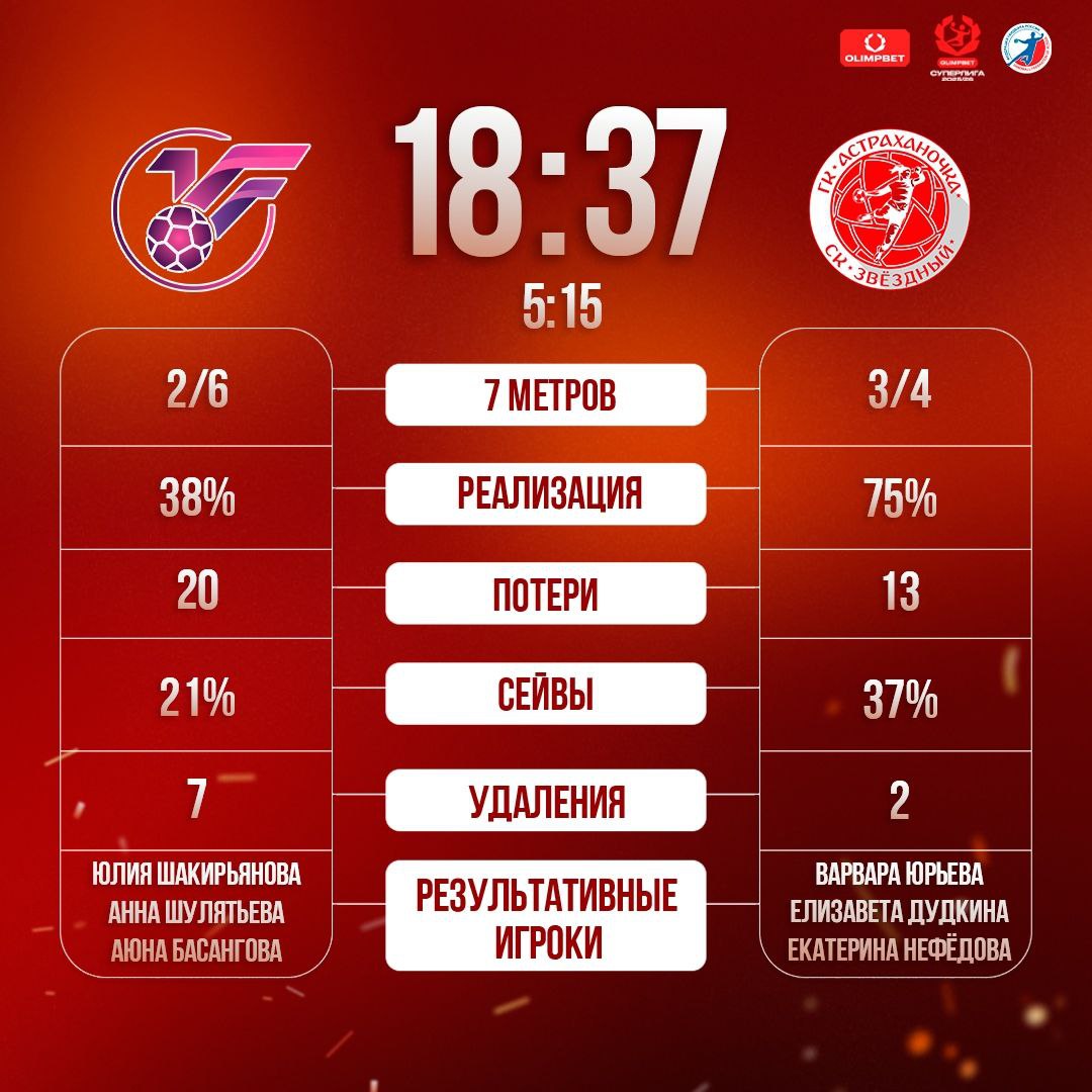 Гандболистки «Астраханочки», которые два года подряд завоевывали бронзовые медали, очередной сезон начали с уверенной гостевой победы. Правда, соперником их стал аутсайдер чемпионата - ижевский «Университет». Наша команда провела планомерную масштабную подготовку к сезону. Помимо учебно-тренировочных занятий, астраханки принимали участие в различных турнирах и товарищеских матчах. Так, в августе «Астраханочка» выезжала в Ростов-на-Дону для участия в Кубке губернатора. Были обыграны звенигородская «Звезда» - 28:27, майкопский «АГУ-Адыиф» - 36:35, поделены очки с «Ростов-Доном-2» - 26:26 и новороссийской «Черноморочкой» - 25:25, и проигран матч хозяевам турнира «Ростов-Дону» - 19:34. В итоге дружина Михаила Измайлова заняла третье место. Волею календаря второй год подряд «Астраханочка» начинает чемпионат России на выезде. Соперником в первом матче стал ижевский «Университет» - команда, не хватающая звезд с неба и занимающая места в самом низу турнирной таблицы. Поэтому изначально было ясно, что победа будет на стороне гостей. Вопрос был лишь в разнице забитых и пропущенных мячей. В стартовом составе волжанок оказалось сразу пять игроков, в прошлом сезоне выступавших за «Динамо-Синару» из Волгограда: София Романенко, Кристина Щеглова, Надежда Колесникова, Елизавета Дудкина, Виктория Турусина. Правда, Романенко до этого несколько лет играла в «Астраханочке», так что можно сказать, что она вернулась на родину. Все они проявили себя очень неплохо. Вратарь Надежда Колесникова, заменившая ушедшую в «Ростов-Дон» после десяти лет выступления за астраханский клуб Анастасию Рябцеву, показала самый лучший результат, отразив 40% бросков по своим воротам. Дудкина стала лучшим бомбардиром матча - на ее счету 5 голов. Ненамного отстала с тремя голами Романенко, дважды отличилась Щеглова, один мяч на счету Турусиной. Если брать других новичков команды, то отметим Екатерину Нефедову, прибывшую в низовья Волги из Новороссийска, которая также забросила 5 мячей. Также пять голов на счету старожила команды Варвары Юрьевой, а лучший бомбардир «Астраханочки» прошлого сезона Яна Сотникова отличилась четыре раза. Астраханки, как и предполагалось, уверенно владели инициативой на протяжении всего матча. Лишь в стартовой пятиминутке счет был ничейным - 2:2, а затем атакующий механизм «Астраханочки» развернулся со всей силой. После первого тайма счет был 15:5 в нашу пользу, а после перерыва он только увеличился. Михаил Измайлов дал возможность поиграть всем гандболисткам, и они не подкачали. 37:18 - весьма неплохое начало, хотя, конечно же, надо понимать, что соперник был весьма слабым. Следующий матч «Астраханочка» проведет на своей площадке в спорткомплексе «Звездный» 11 сентября против майкопского клуба «АГУ-Адыиф». Начало матча в 18:30.