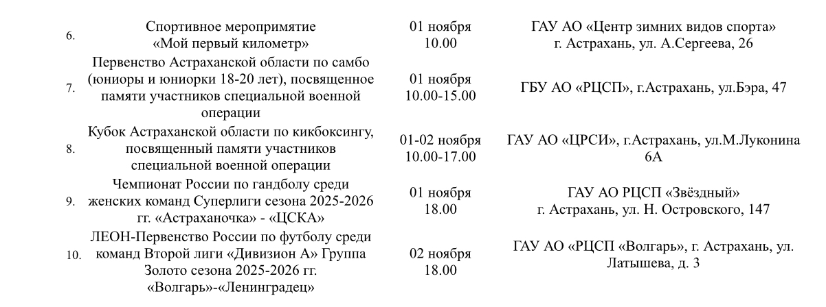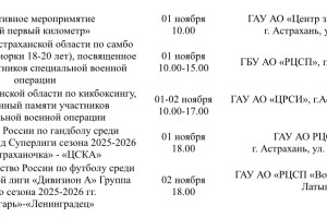 На новой неделе астраханцев ждет 10 интересных спортивных мероприятий25 октября 2025 года, 14:30