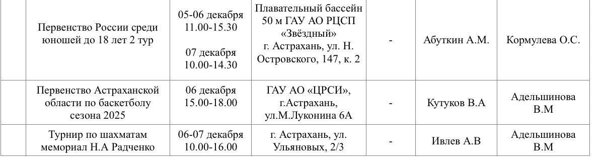 На новой неделе астраханцев ждет масса интересных спортивных событий29 ноября 2025 года, 12:30
