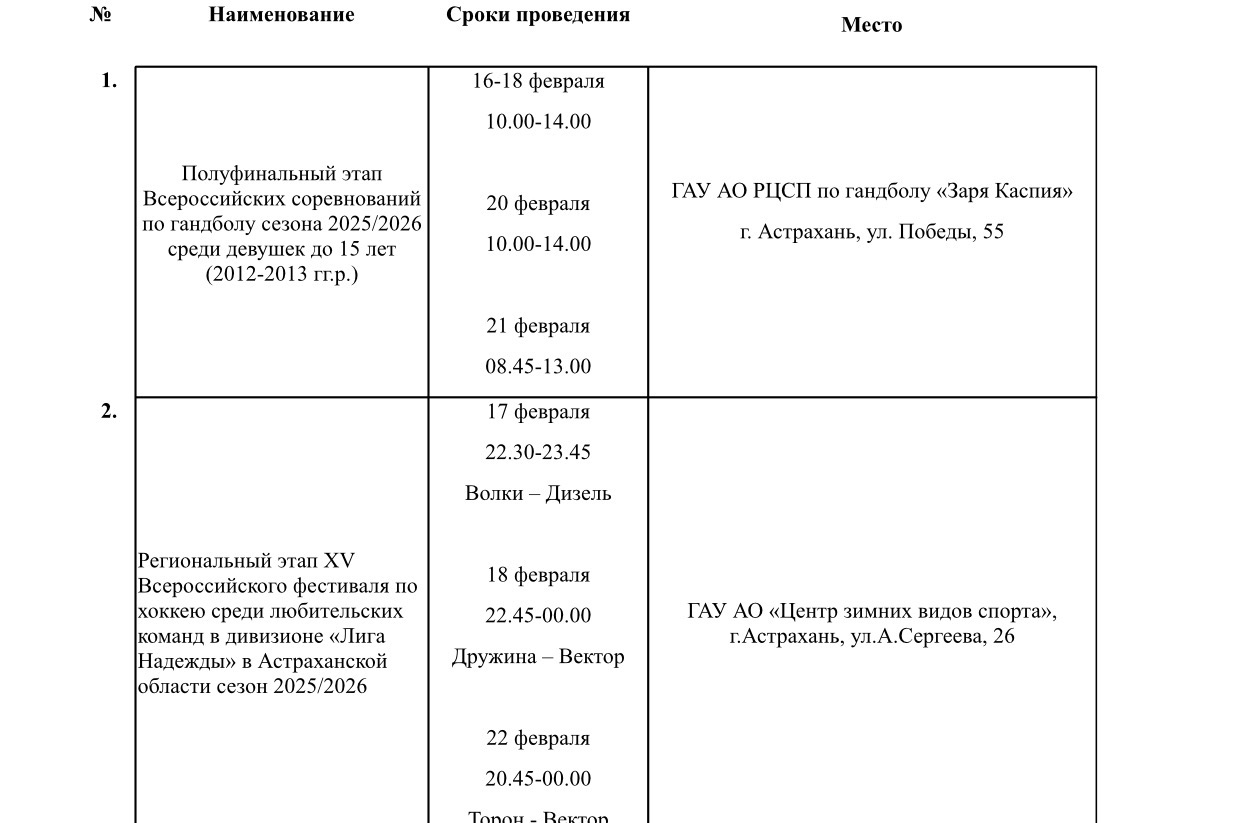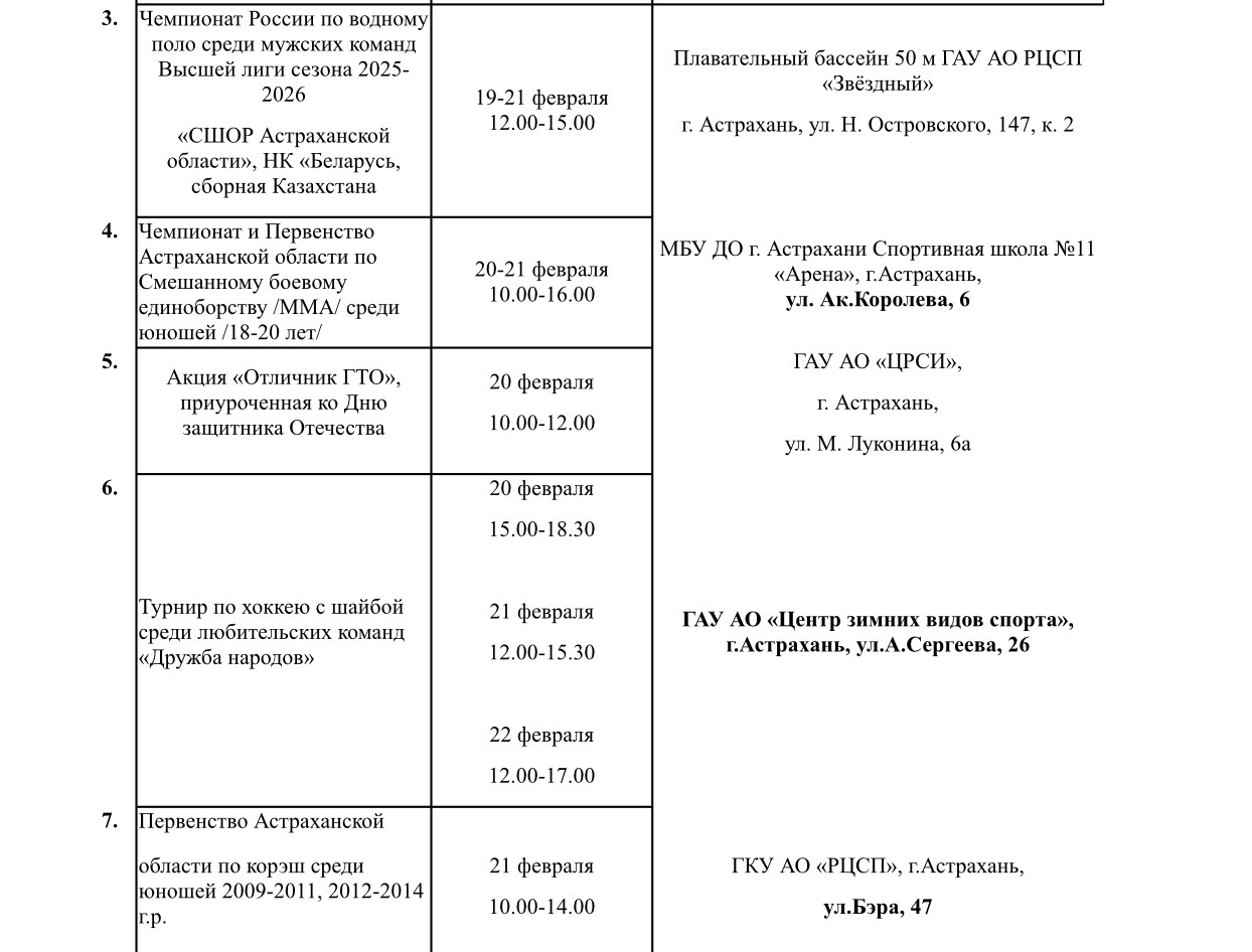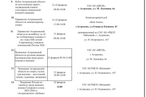 На новой неделе в Астраханской области пройдет 15 спортивных мероприятий14 февраля 2026 года, 16:30