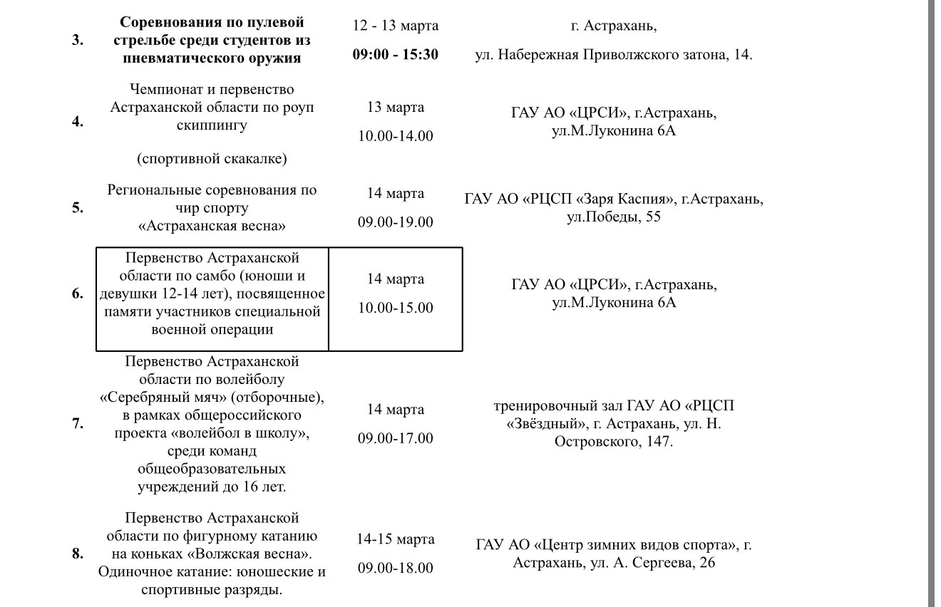 На новой неделе астраханцев ждет масса интересных спортивных событий07 марта 2026 года, 12:40