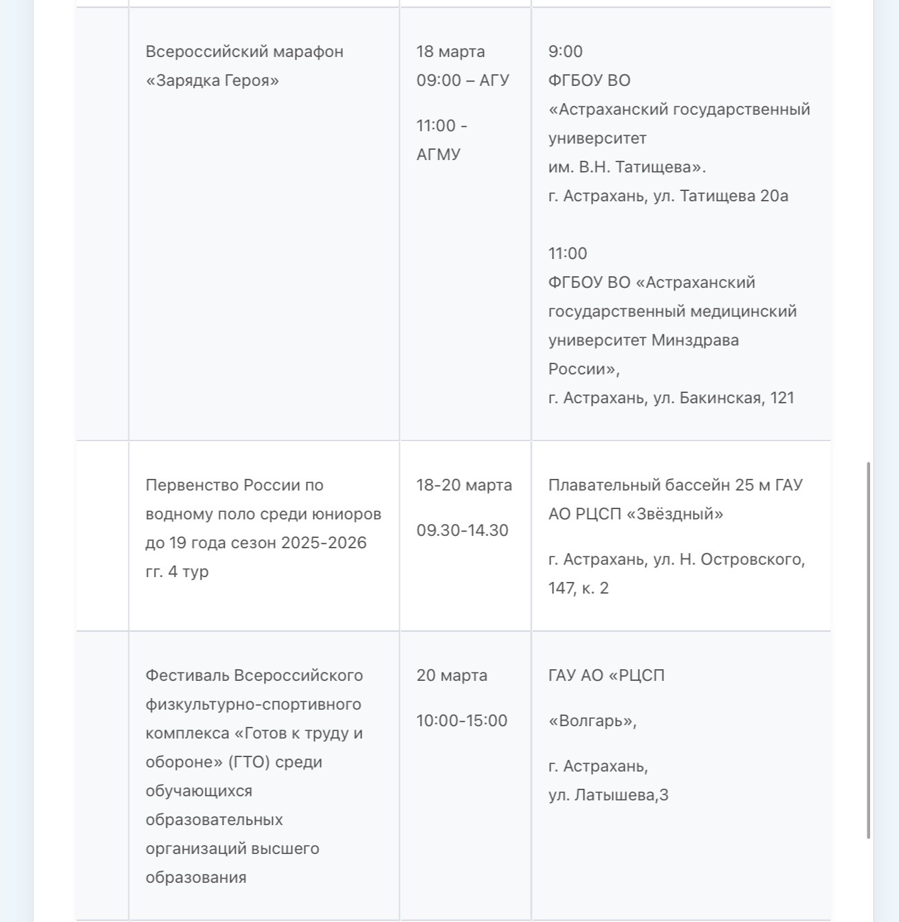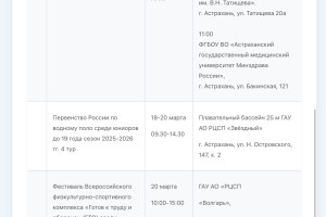 На новой неделе астраханцев ждет масса спортивных мероприятий15 марта 2026 года, 00:10